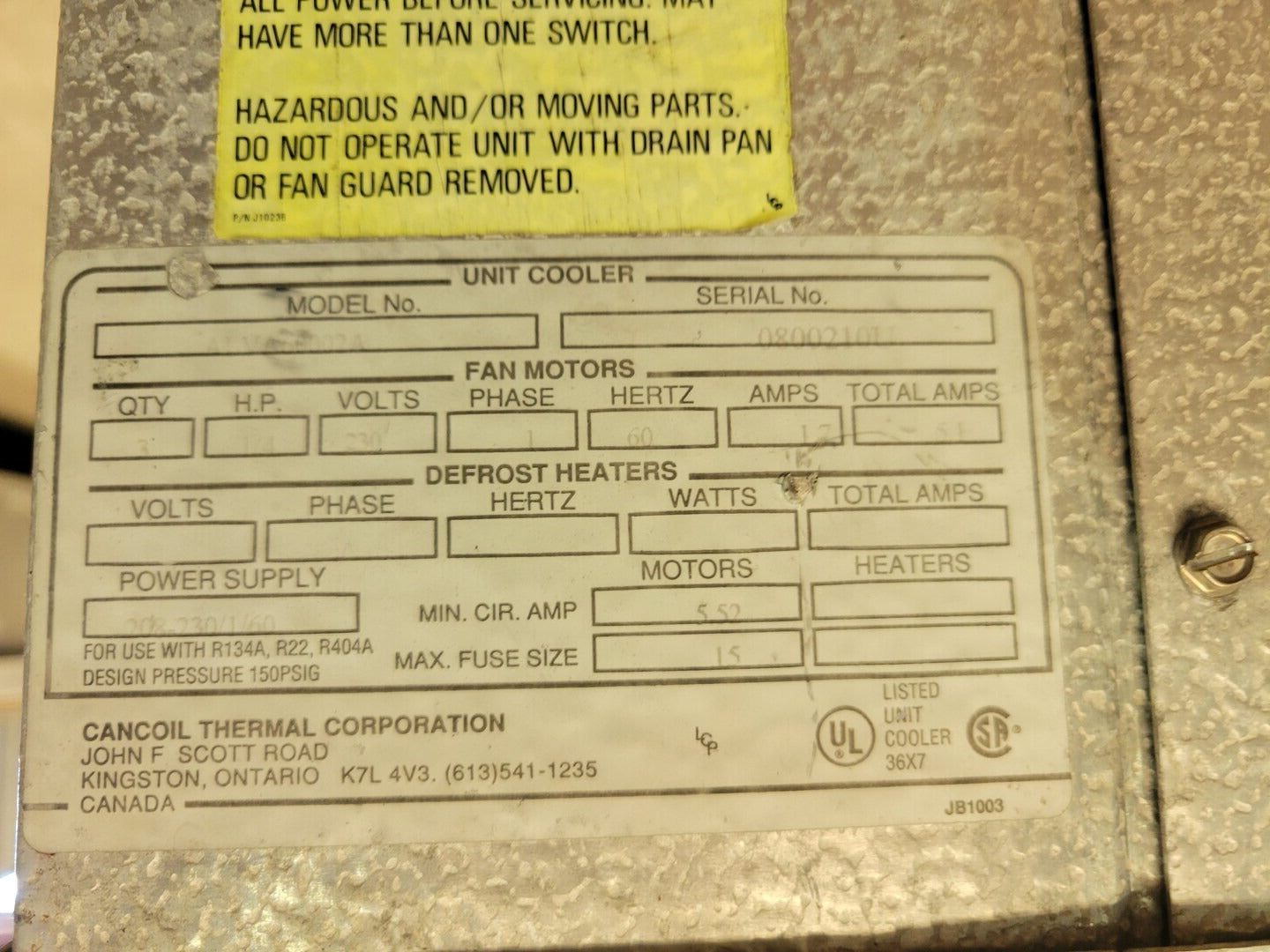 Motores de ventilador Cantidad: 3 Caballos de fuerza: 1/4 caballos de fuerza Eléctrico: 230 V, monofásico, 60 Hz, 1,7 A Compatibilidad de refrigerantes: R134A, R22, R404A Presión de diseño: 150 psig |