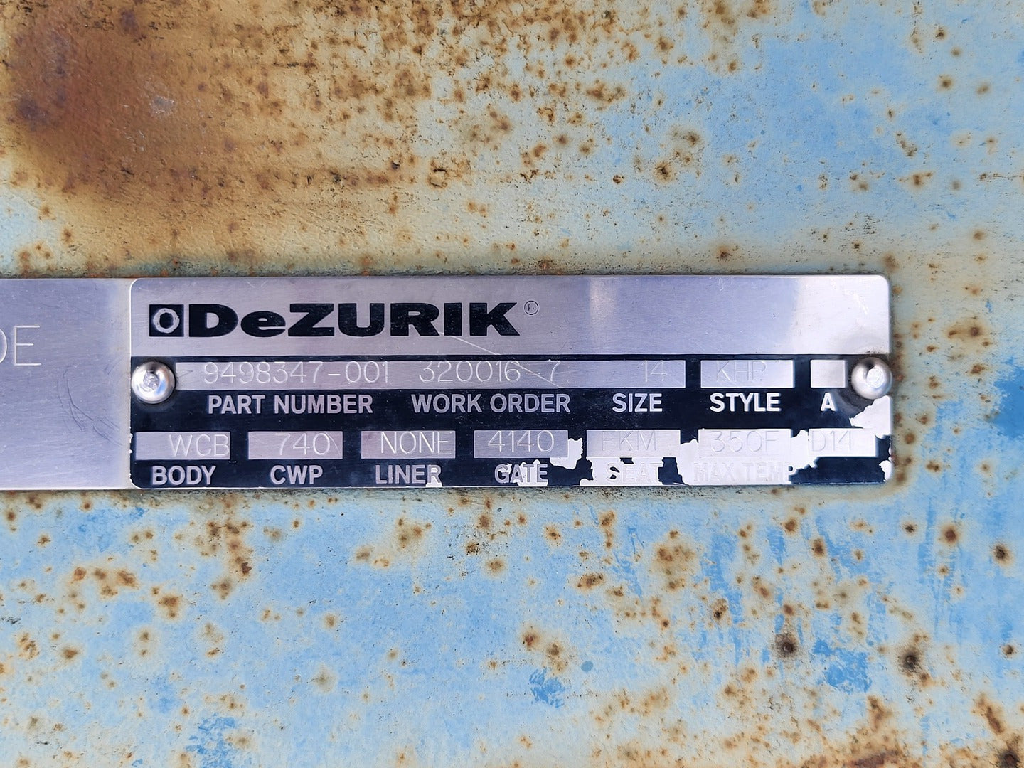 14" Class 300, Knife Gate Valve 9498347-001, Type KHP, 740PSI CWP
