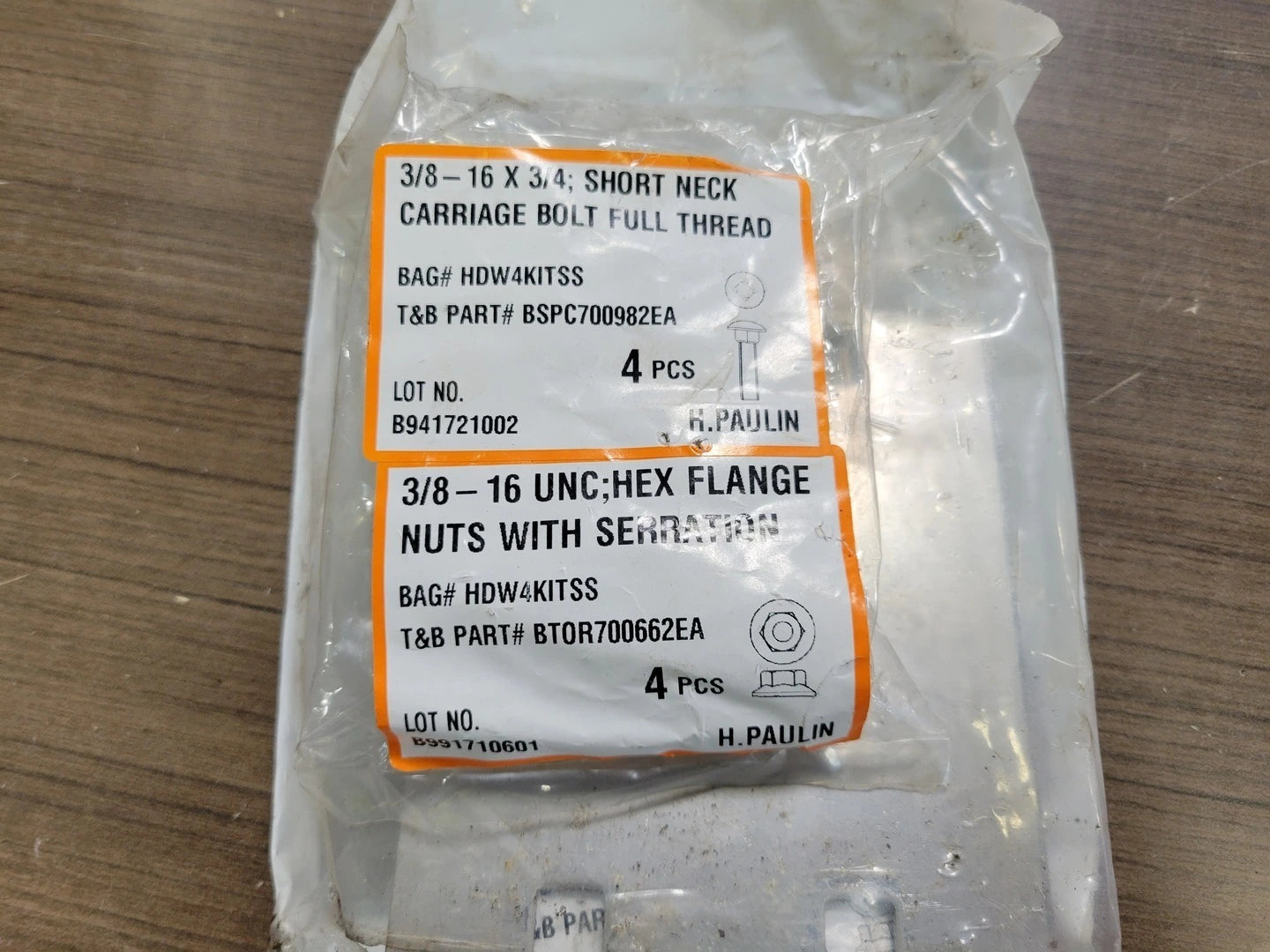 • 4 piezas de 3/8-16 x 3/4 pulgadas; Perno de cuello corto, rosca completa, acero inoxidable
