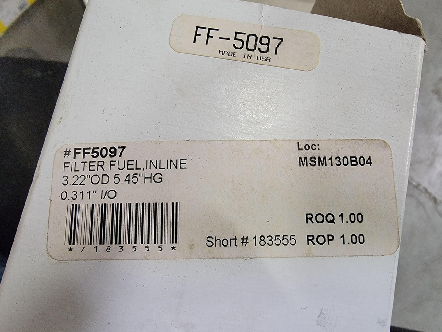 Filtro de combustible en línea No. FF5097, 3.22" OD, 5.45 HG, 2" ID, 0.311" I/O