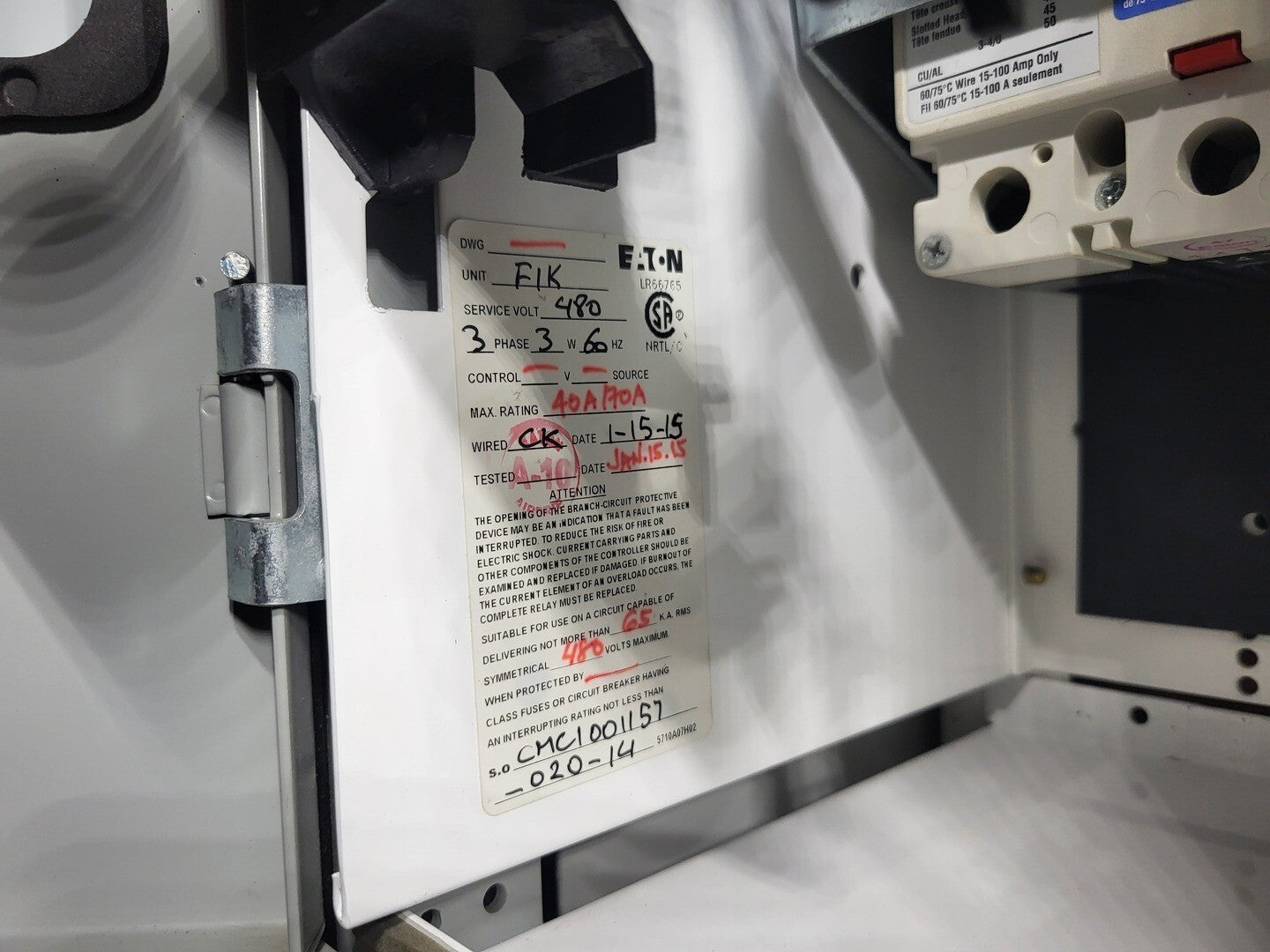 MCC Unit 40/70 Amp Breaker, 480V, 3ph