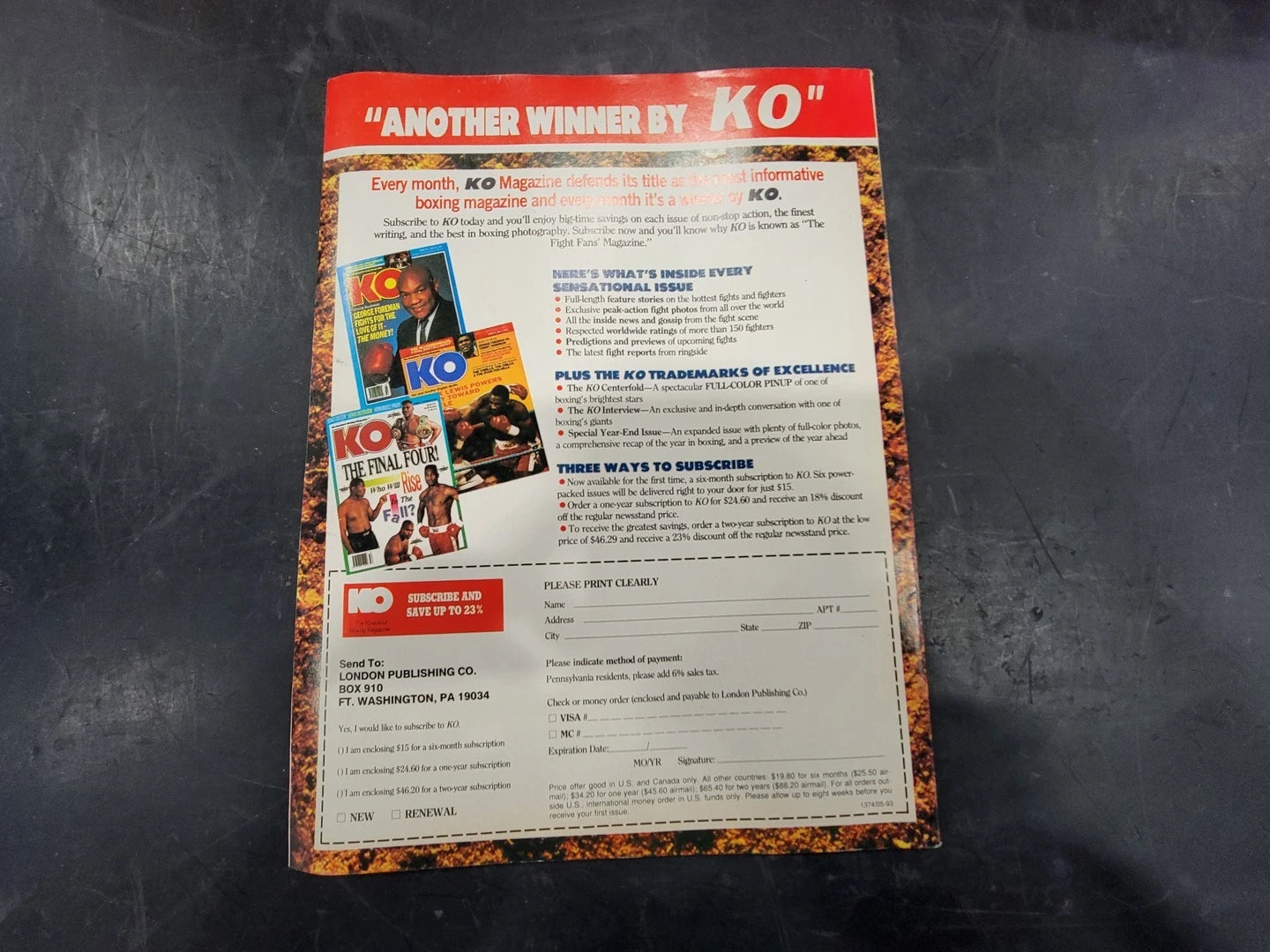 Noviembre de 1993 Revista Evander Holyfield, Pernell Whitaker, Terry Norris