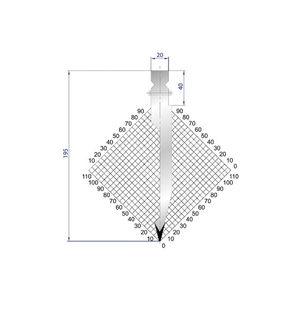 Part No. 1238 @ 100mm Right Horn 28 Degree Straight Punch