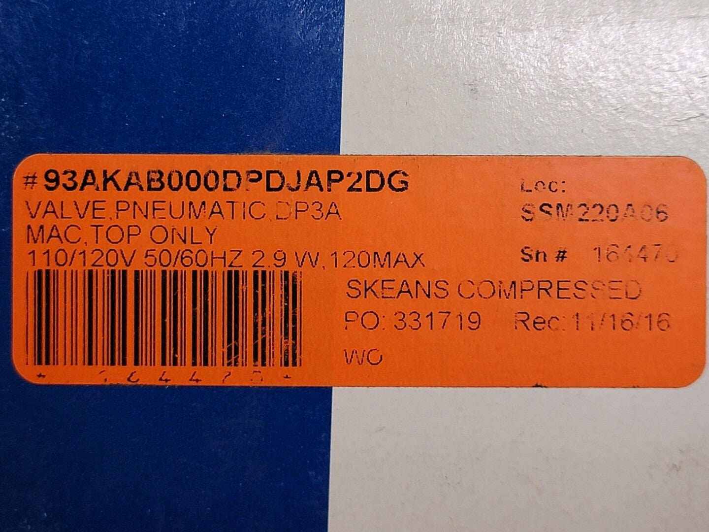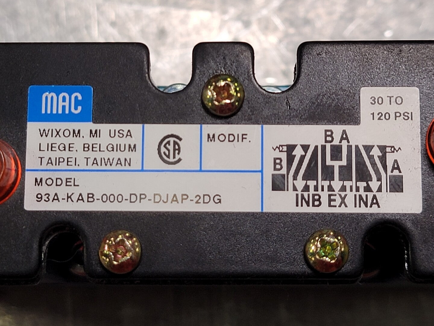 Válvula neumática de solenoide operada por piloto No. 93A-KAB-000-DP-DJAP-2DG, 30-120PSI