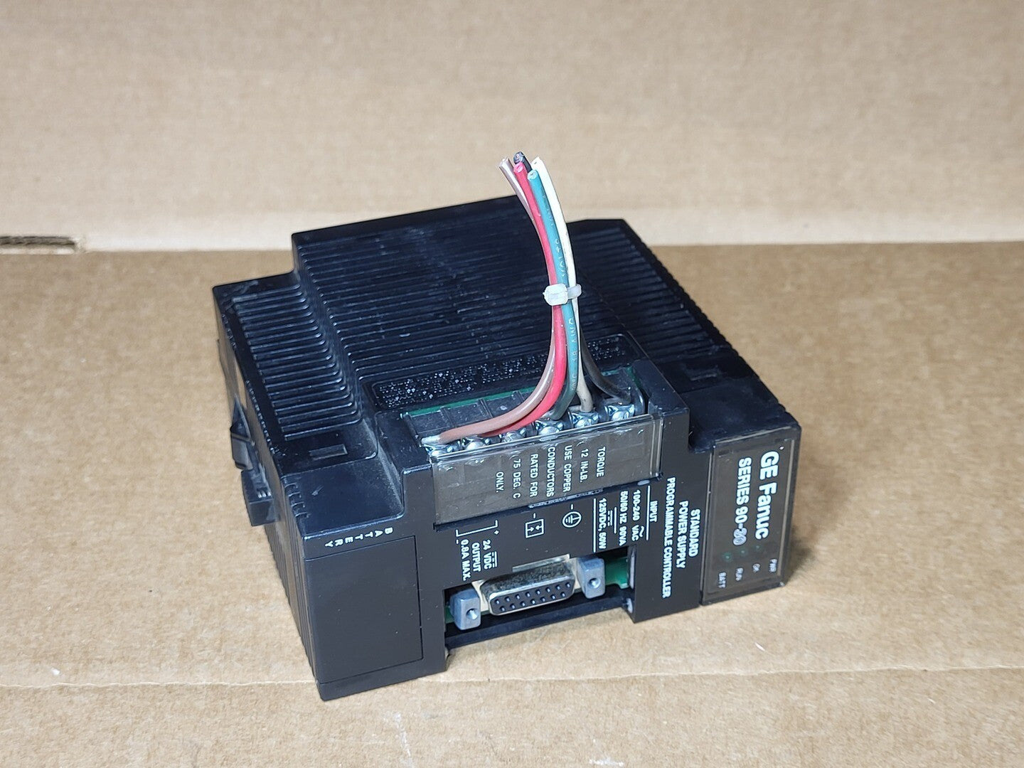 Series: 90-30 Input Voltage: 120/240 VAC or 125 VDC Input Frequency: 50/60 Hz Input Power Rating: 30 Watts Output Voltage: 24 VDC Output Current: 0.8 Amps maximum Certifications: UL Listed, CE Marked, Ex Rated Hazardous Location Rating: Class I, Division 2, Groups A B C D, T4A Ambient Temperature Range: 0°C to 60°C Mounting Type: Rack Mounted (for GE Fanuc 90-30 PLC system) Function: Provides regulated 24VDC power to Series 90-30 PLC components |