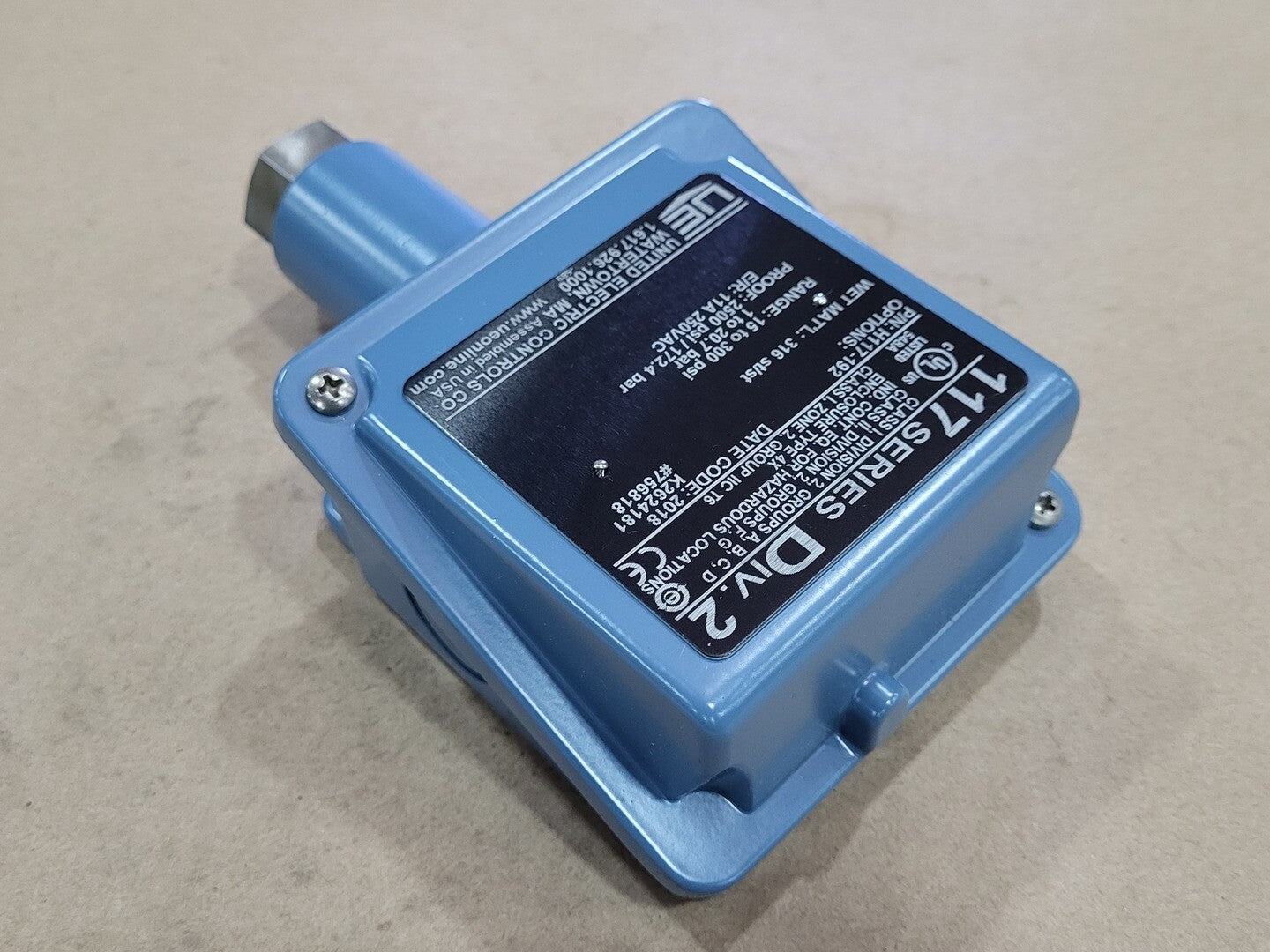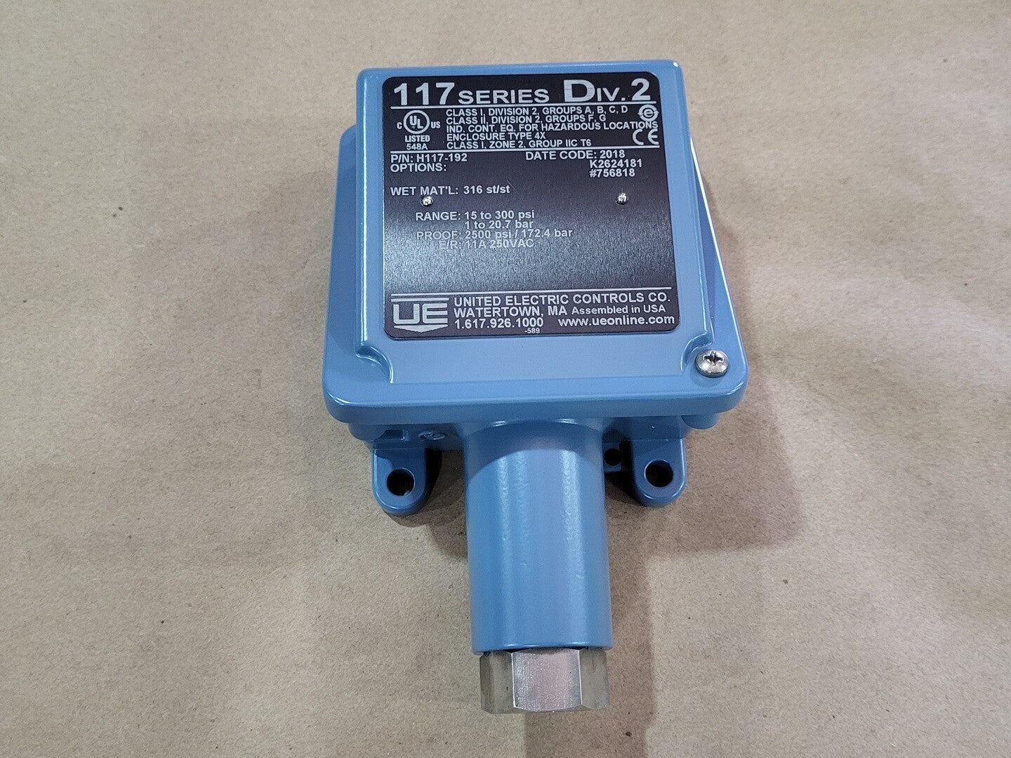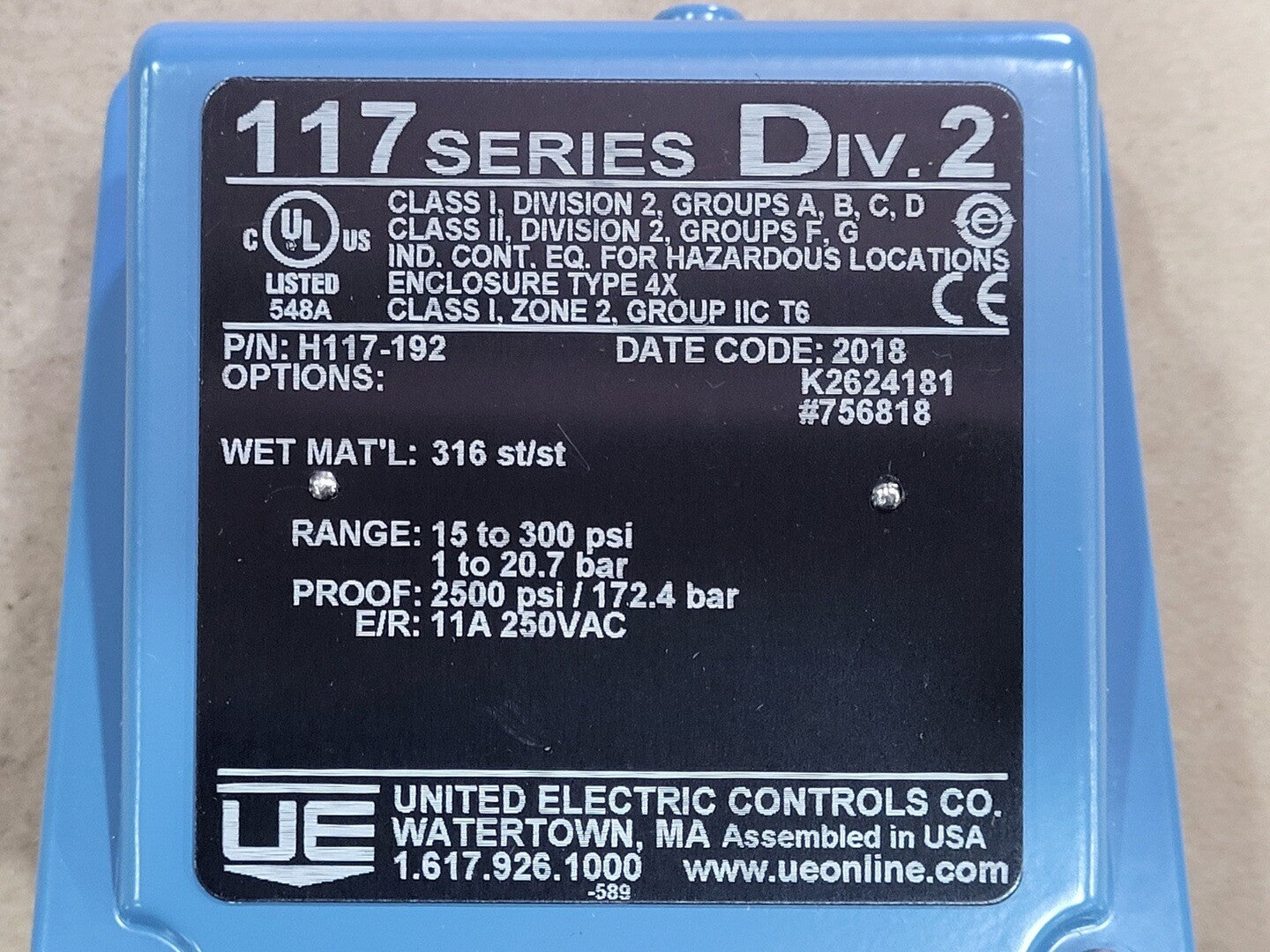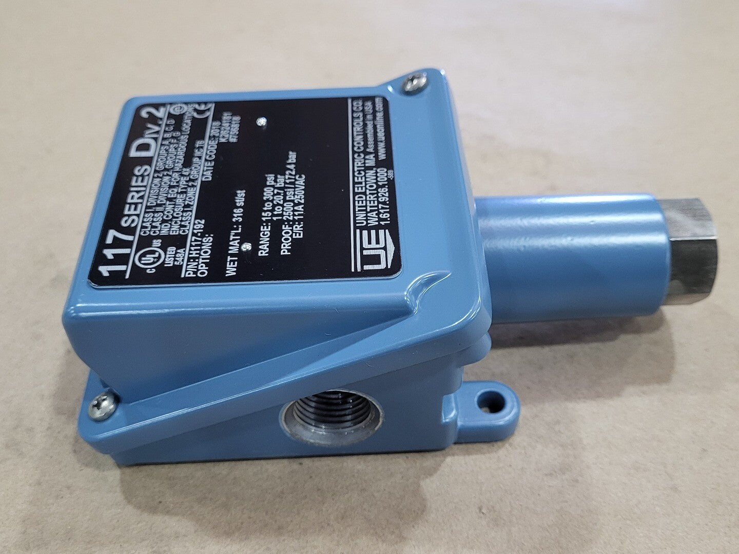 Pressure Range: 15 To 300 psi Proof Pressure: 2500 psi/ 172.4 bar E/R: 11A, 250VAC Product Type: General Purpose Switches Setpoint Adjustment Type: Internal Adjustment With Reference Scale Switch Type: (1) SPDT Wetted Materials: 316 Stainless Steel Product Category: Switches |