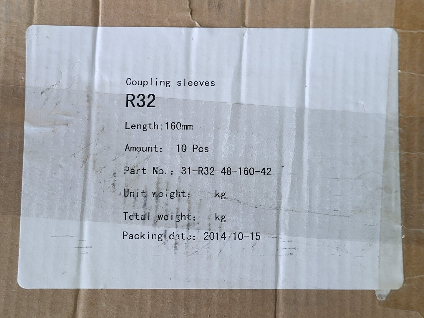 R32 160mm Coupling Sleeve 31-R32-48-160-42 (Box of 10)
