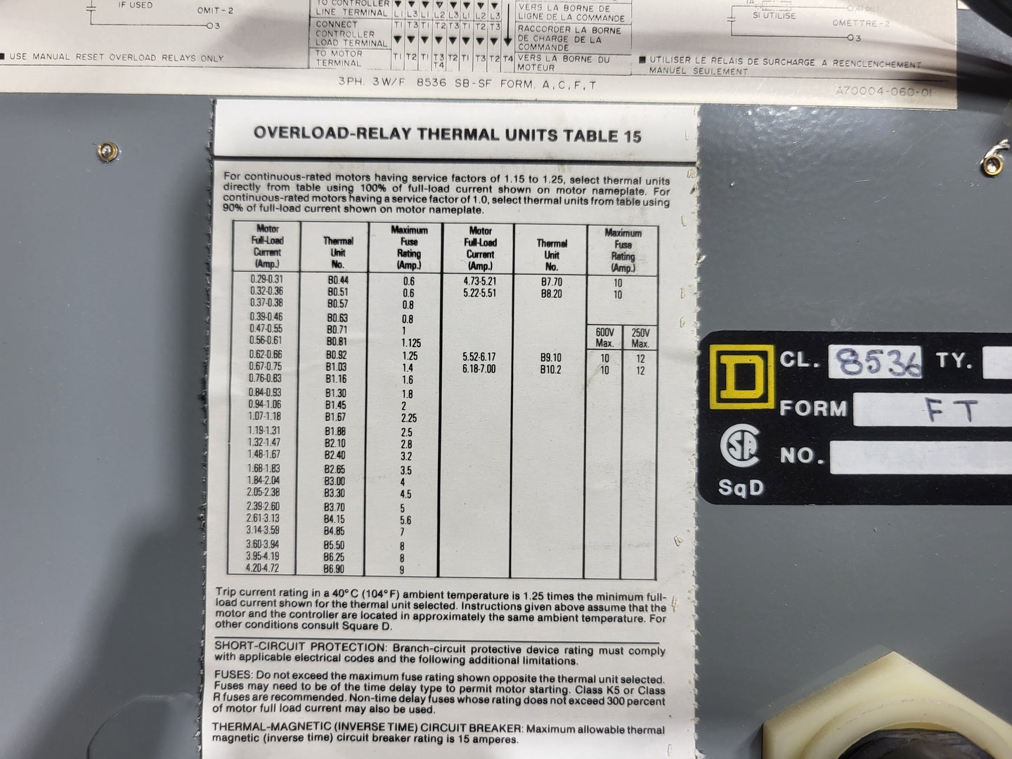 Size 00 Motor Starter 8536SAO12S w/ Enclosure