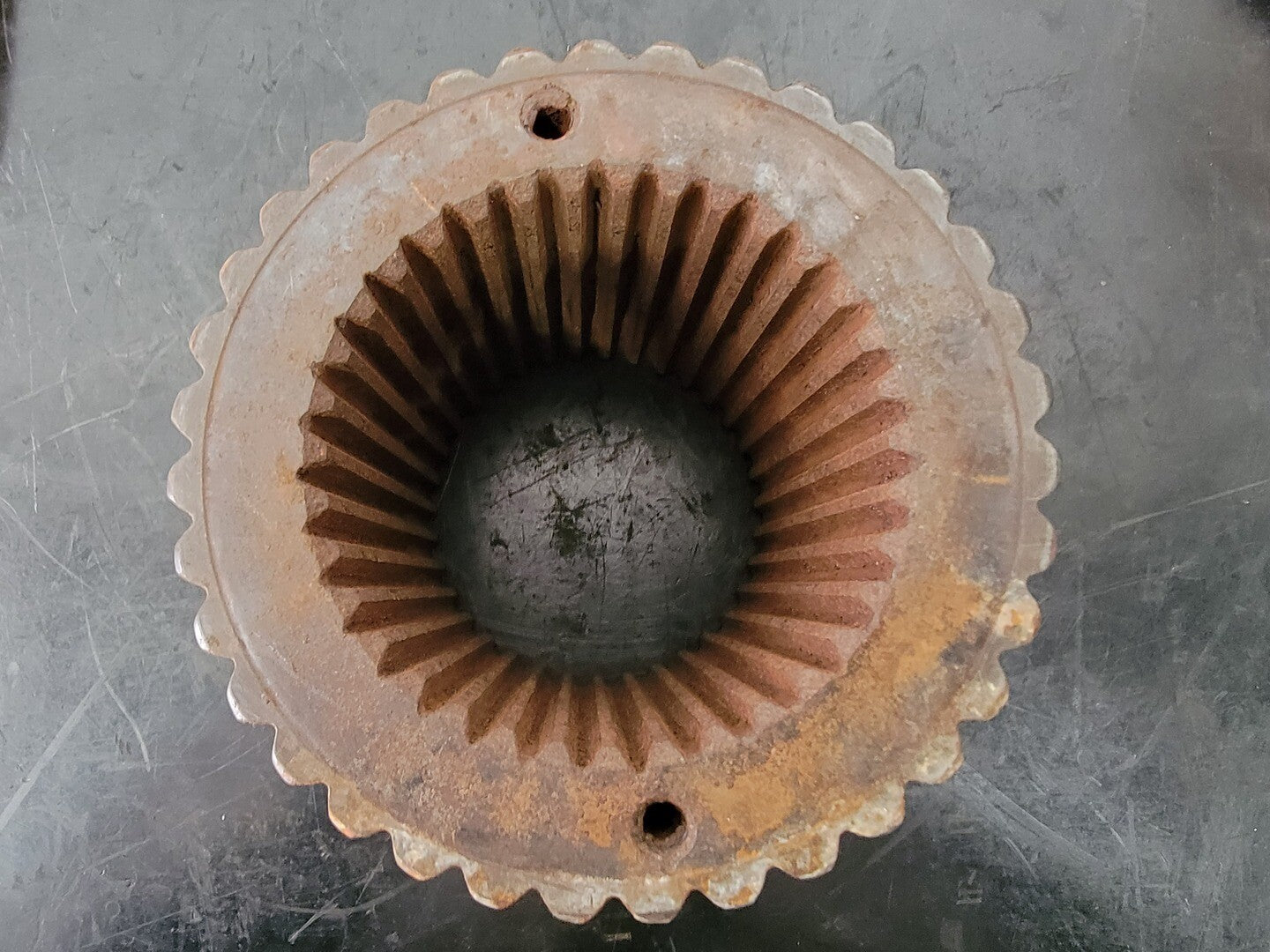 Piñón síncrono con dientes interiores y exteriores