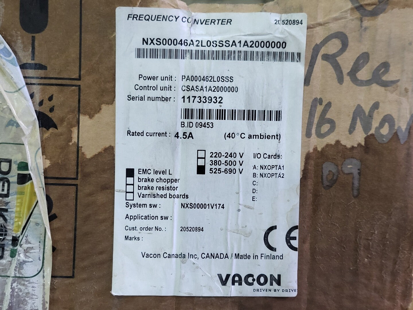 U1: 3ph, 525-690V, 50/60 Hz, 4.5A