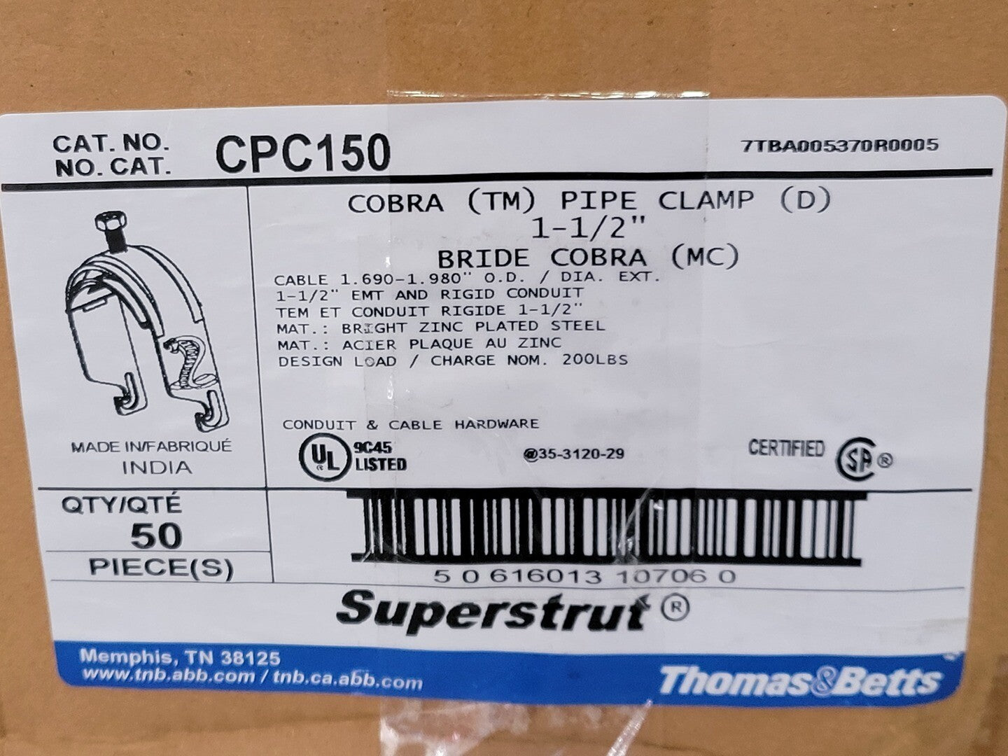 Abrazadera de tubo rígido/EMT de 1-1/2" CPC150 (caja de 43)