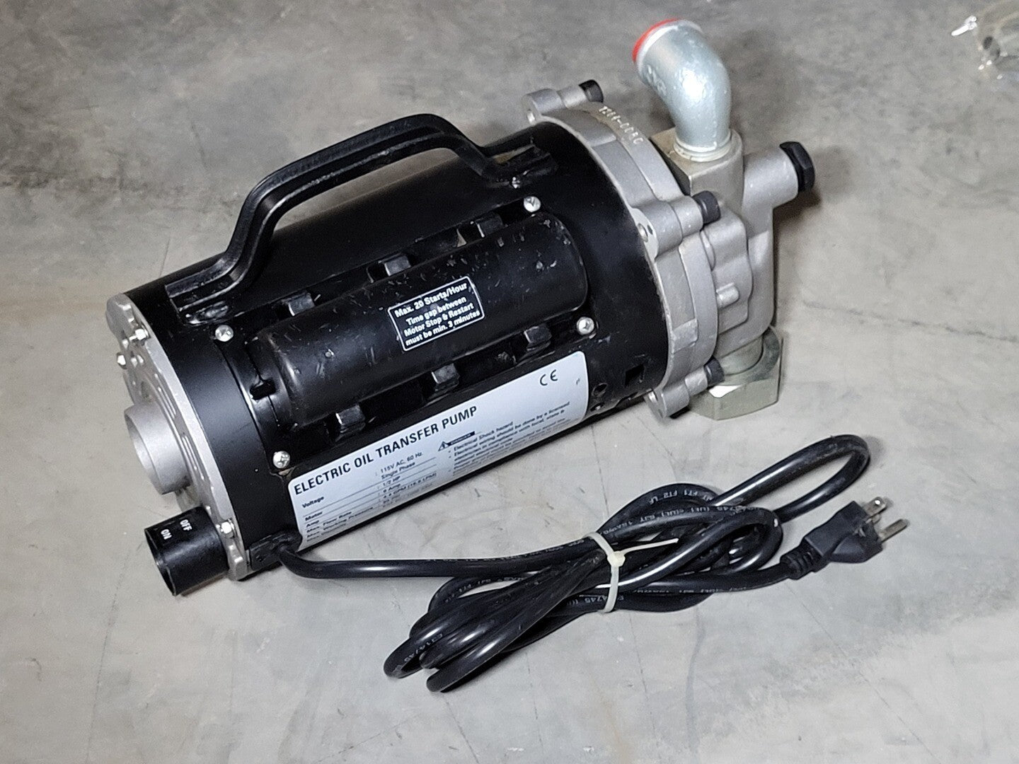 Item: Oil Transfer Pump Includes: Bung, Dispensing Nozzle, Hose, Suction Tube] Max. Viscosity:1,000 SUS Motor Type: Air Cooled with Thermal Protection with UL listed frame Voltage: 115 V AC Motor RPM: 1,720 RPM Max. Pressure (PSI): 65 psi Outlet: 3/4 in NPT HP: 1/2 hp GPM Max: 4.4 gpm Suction Lift (Ft.): 6 Inlet: 1 in NPT Gear Material: Steel Motor Frame: 56C |