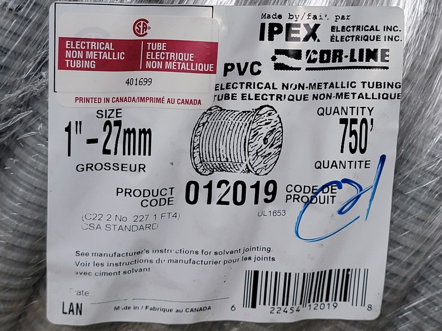 1" x 750 ft PVC Conduit Flexible Tube 012019