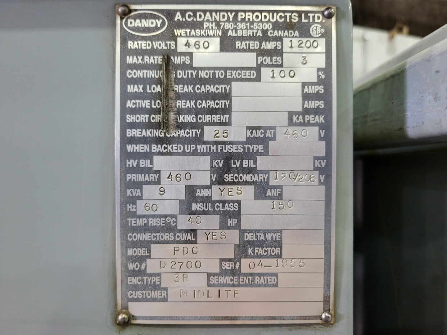 • 9kVA, 460V Pri., 120/208V Sec., ANN