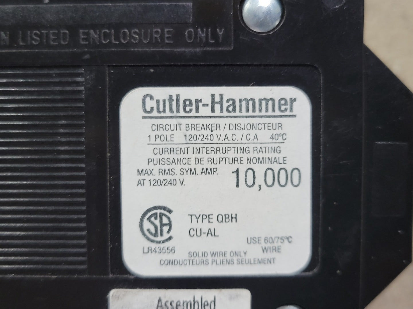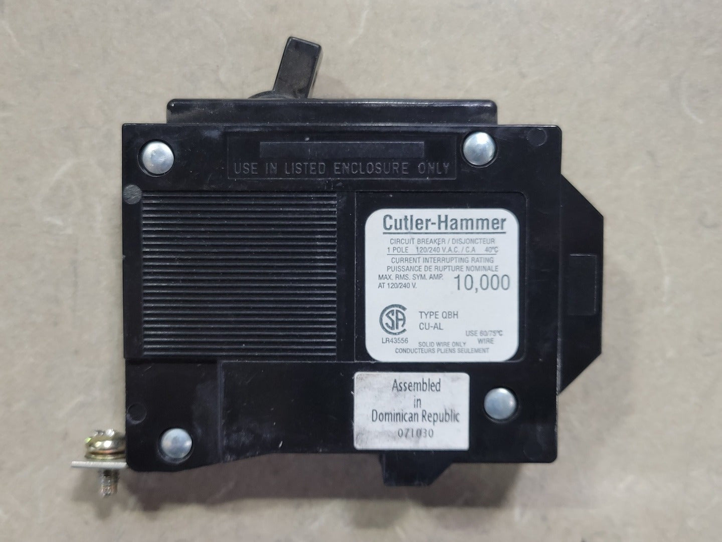 Capacidad de interrupción de corriente: 10 kA a 120/240 V