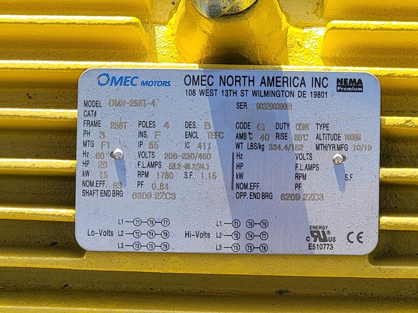 Motor eléctrico 256T de 20 hp, 208-230/460 voltios, 1780 rpm