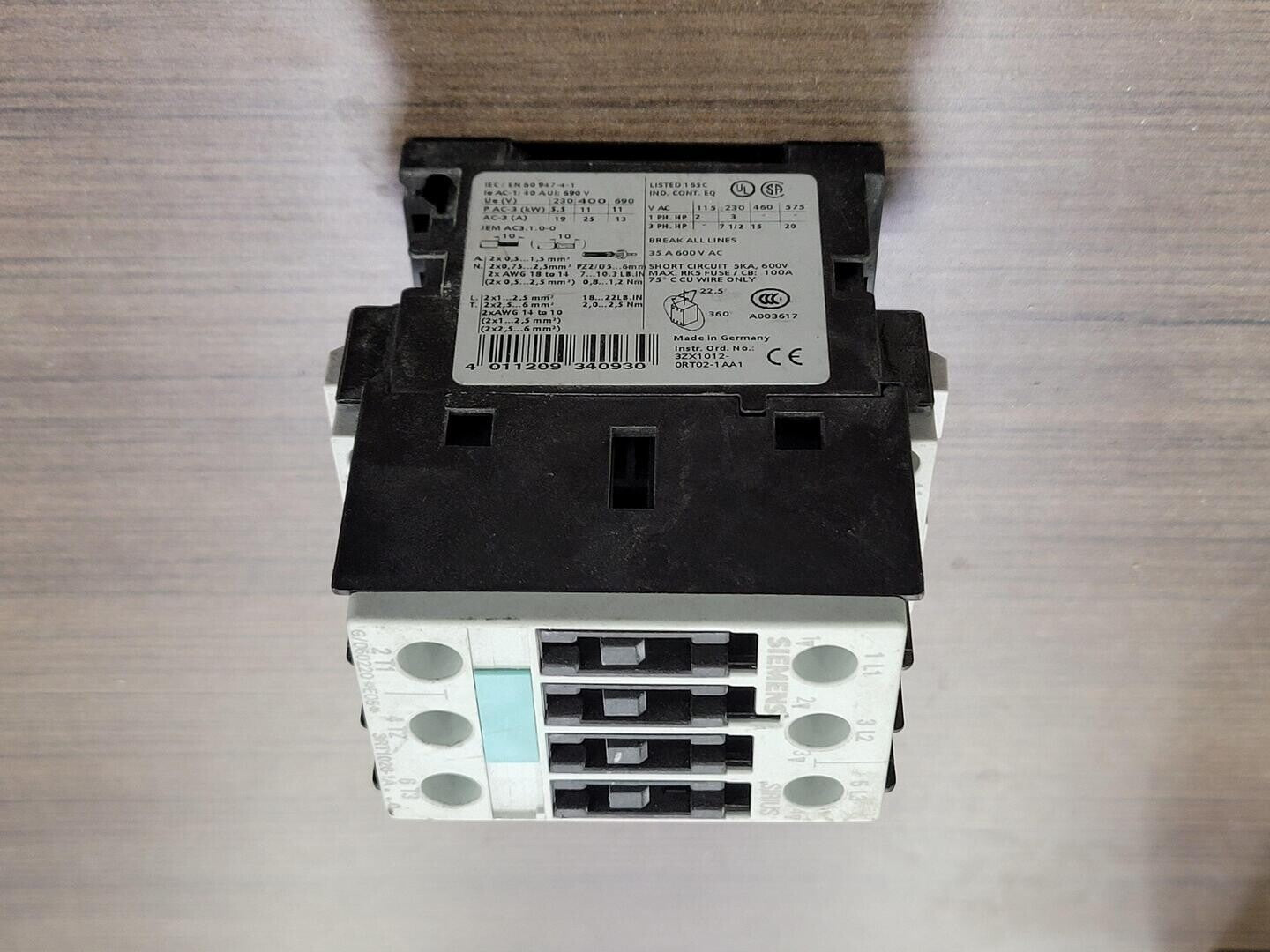 Contactor de arranque de motor de 20 hp, 35 amperios y 600 voltios 3RT1026-1A