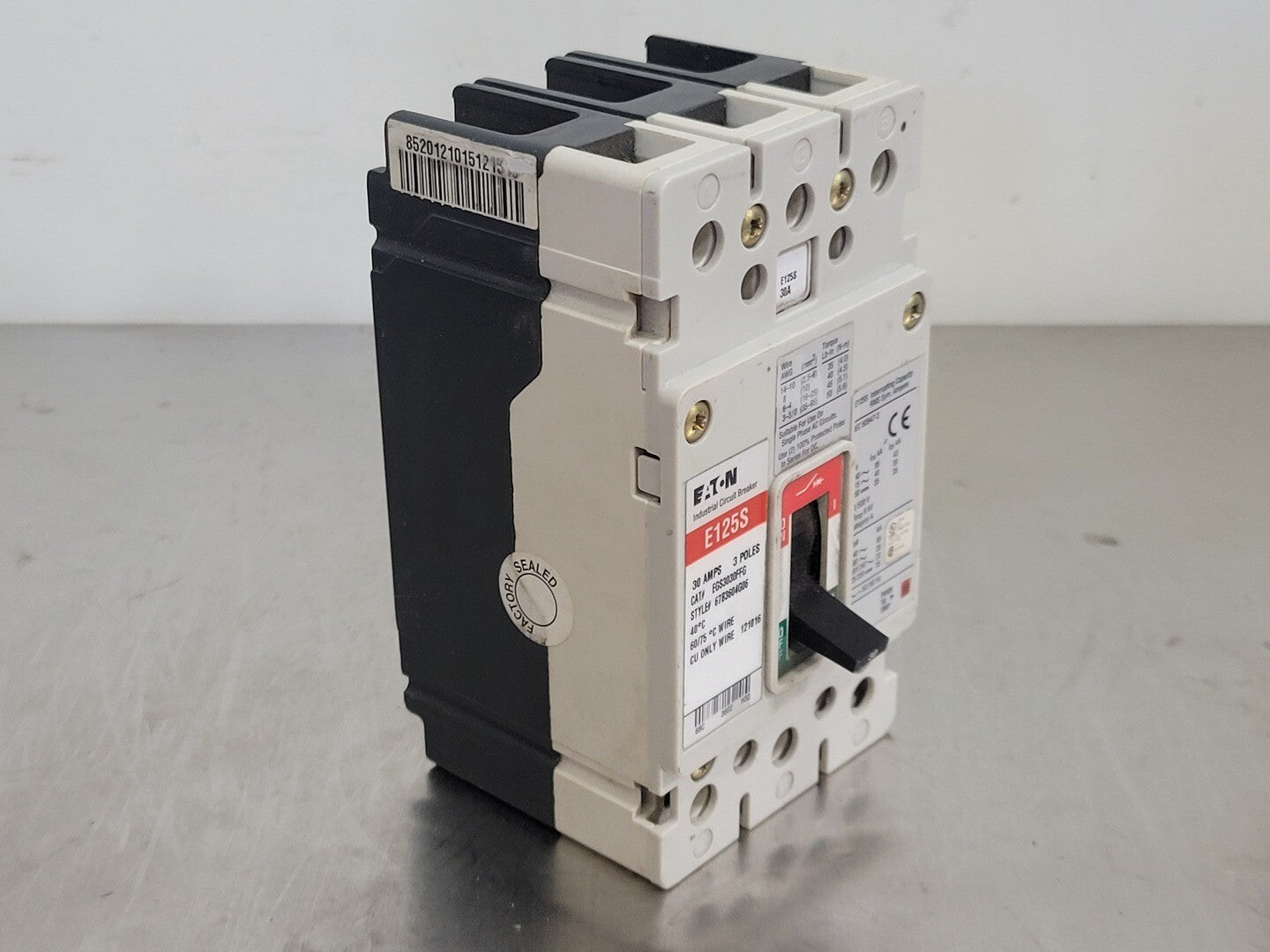 El Eaton EGS3030FFG es un disyuntor de 3 polos y 30 amperios. Tiene un estilo de montaje atornillado y está diseñado para sistemas trifásicos de 600 voltios. Las dimensiones del producto son 5,50 x 3,50 x 3,00 y pesa 2,00 libras. El EGS3030FFG forma parte de la colección Breakers de Eaton. El precio de este producto está disponible previa solicitud y actualmente hay 2 unidades disponibles.