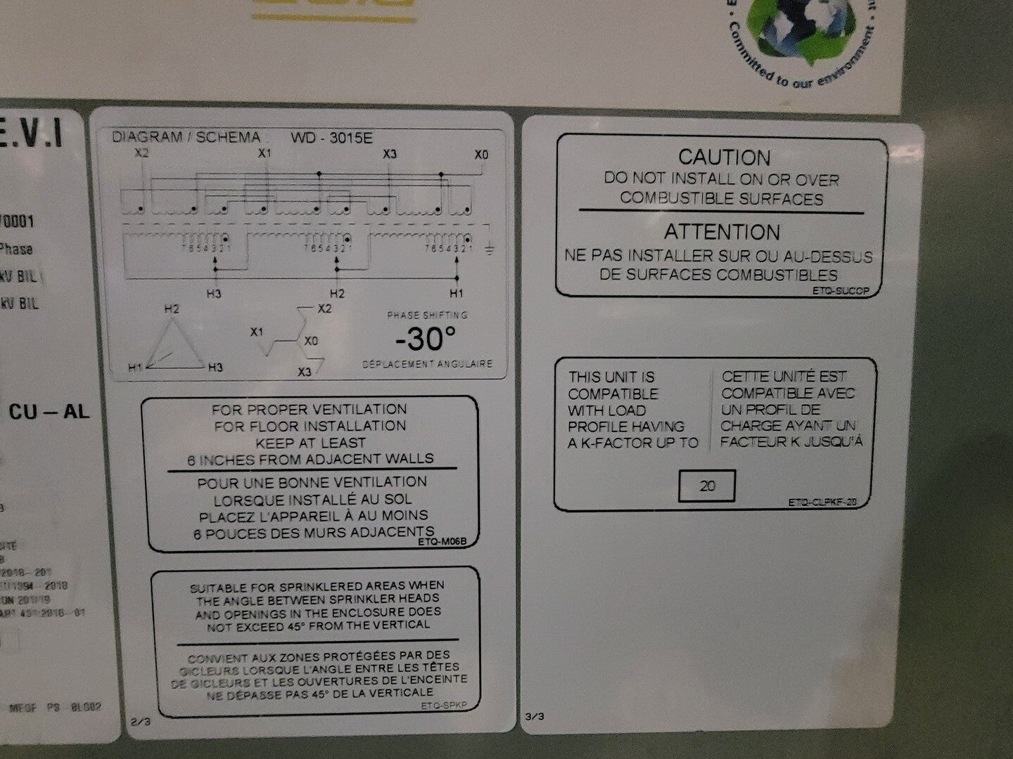 30 kVA Transformer 600 Pri. Volts, 208/120 Sec. Volts CZ6C0030 S025397