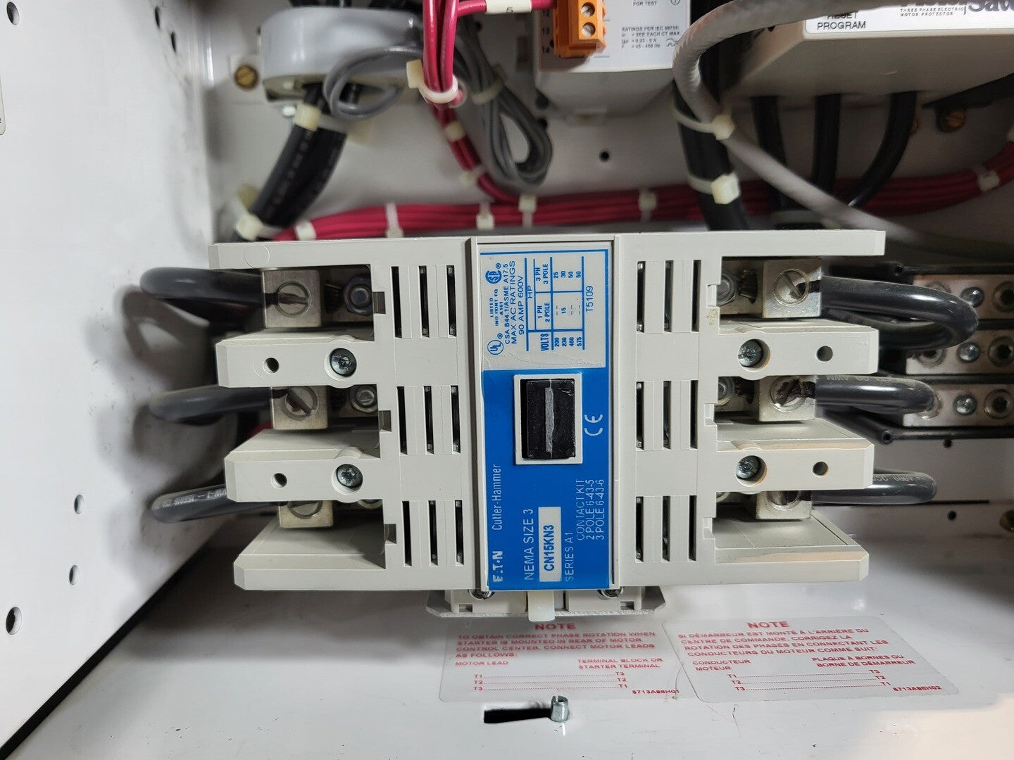 **Fits 2100 MCC Frame Circuit Breaker Maker: Eaton Model: HMCP Voltage: 600V Amps: 100 amps Poles: 3 Ground Fault Relay Maker: Eaton Model: D64RPB30 Overload relay: 24-240 Vac/dc Motor Saver Electronic Overload Relay Maker: Eaton Model: E777-575 Voltage: 450-600VAC Phase: 3 Transformer Maker: MCi Model: 5642-14-120-00 VA: 200VA Primary: 600V Secondary: 120V Contactor Maker: Eaton Model: CN15KN3 Size: NEMA 3 Amp: 90A Volt: 600V |