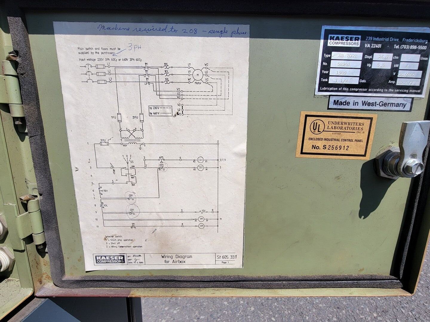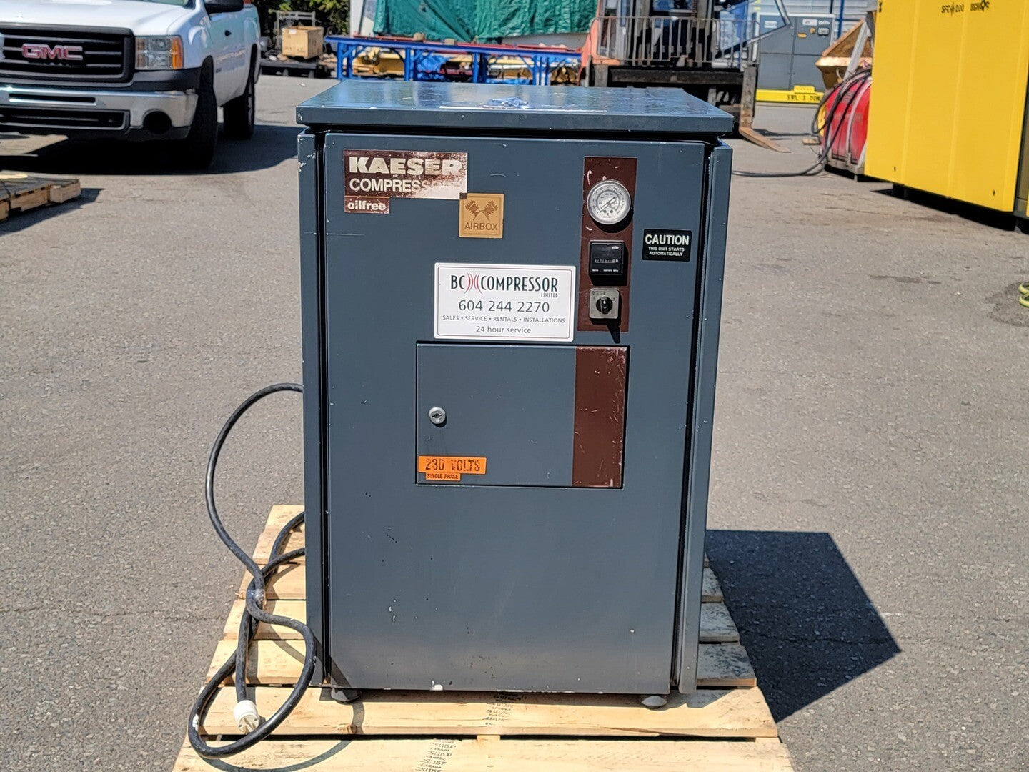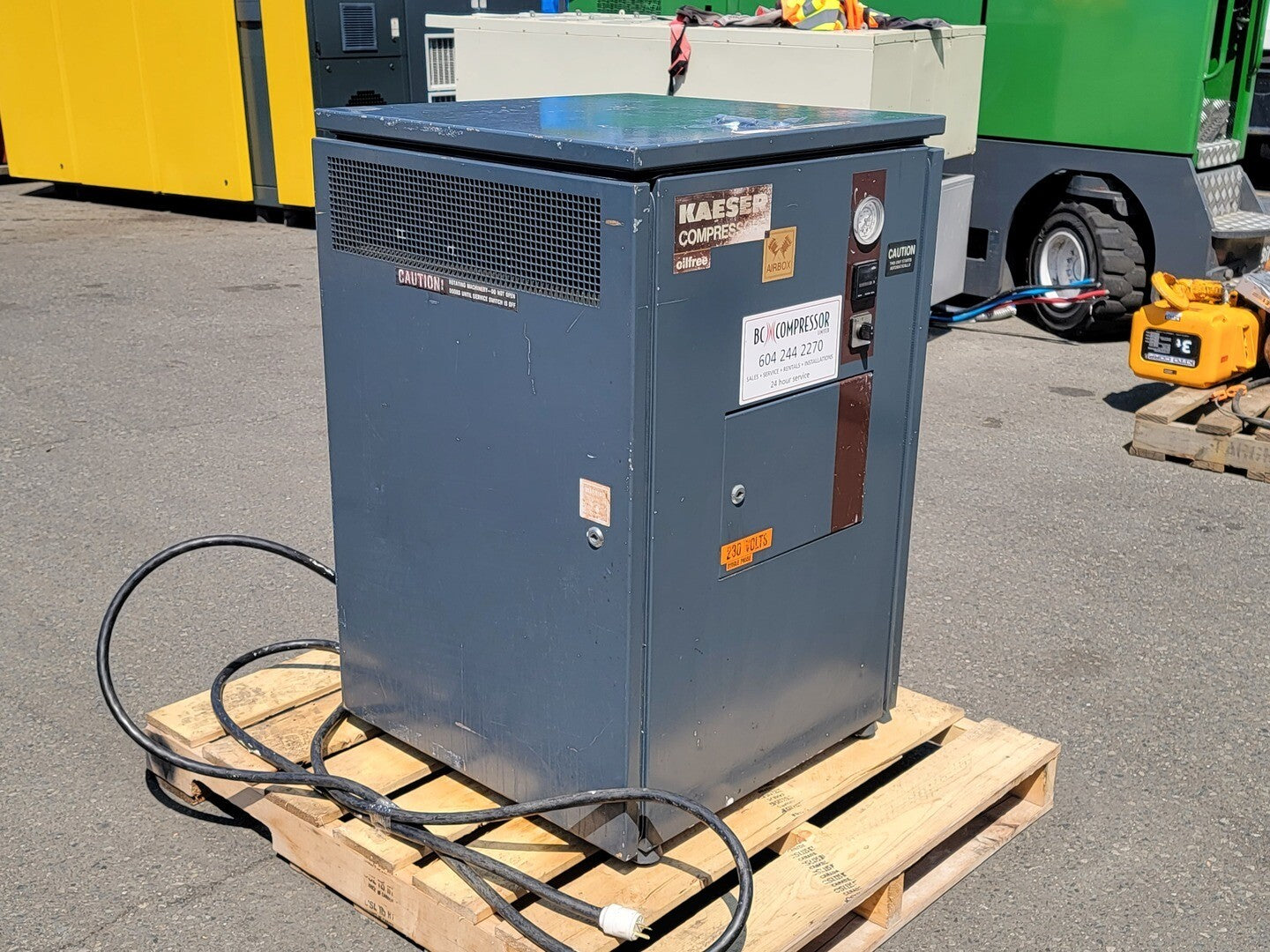 El compresor de aire sin aceite de 5,5 hp con secador de aire es un compresor de tornillo rotativo con potencia eléctrica. Es un modelo estacionario con un tamaño de tanque de 1,25 galones. El compresor tiene un CFM (pies cúbicos por minuto) de 24,7 cfm y funciona con 230/460 voltios con 15,6/7,8 amperios. Es un compresor trifásico fabricado por KAESER en 1989. El compresor se ha utilizado durante 73764 horas y pesa 440 libras. Está disponible para su compra a un precio de $6000 con 1 unidad actualmente en stock.