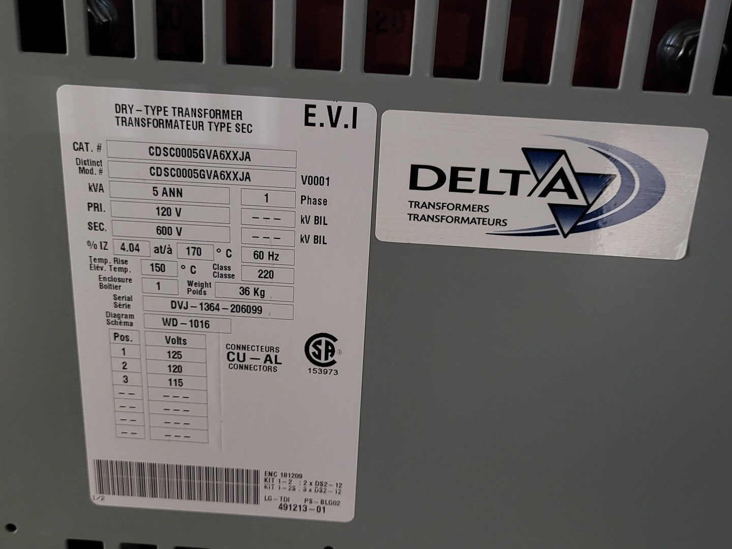 5 kVA Transformer 120 pri. volts, 600 sec. volts CDSC0005GVA6XXJA