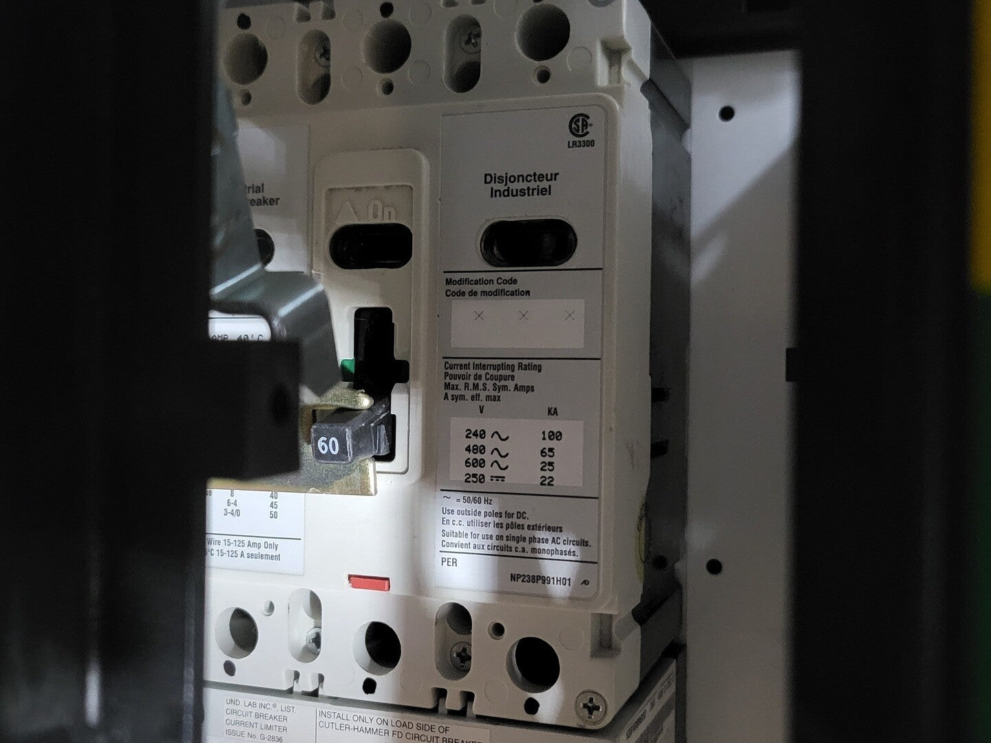 **Fits 2100 MCC Frame Circuit Breaker Maker: Cutler Hammer Model: HFD3060, HFD3015 Voltage: 600V Amps: 60/15 amps Poles: 3 Current Limiter Maker: Cutler Hammer Model: LFD3070R Used with: 15-70A |