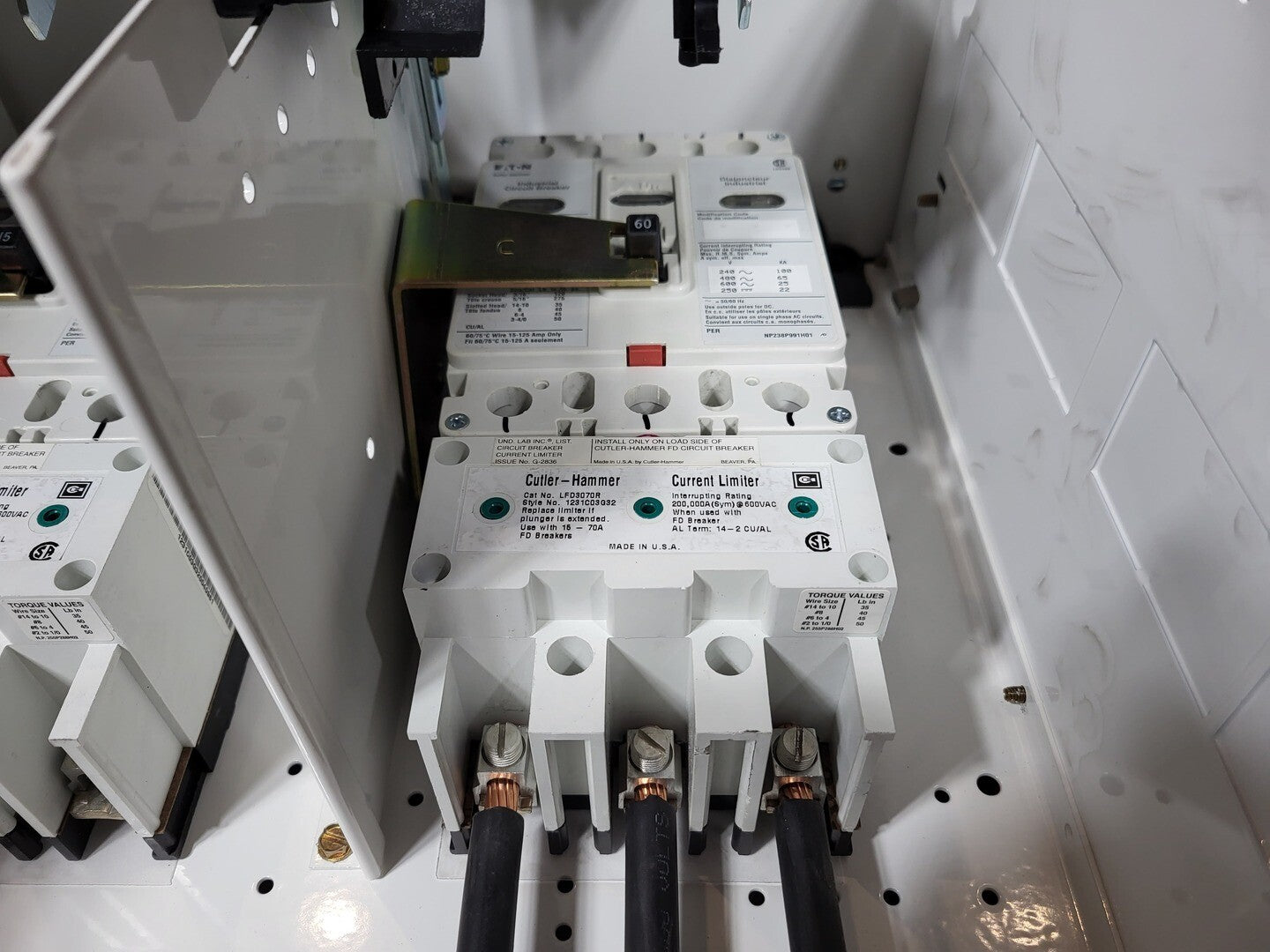 **Fits 2100 MCC Frame Circuit Breaker Maker: Cutler Hammer Model: HFD3060, HFD3015 Voltage: 600V Amps: 60/15 amps Poles: 3 Current Limiter Maker: Cutler Hammer Model: LFD3070R Used with: 15-70A |