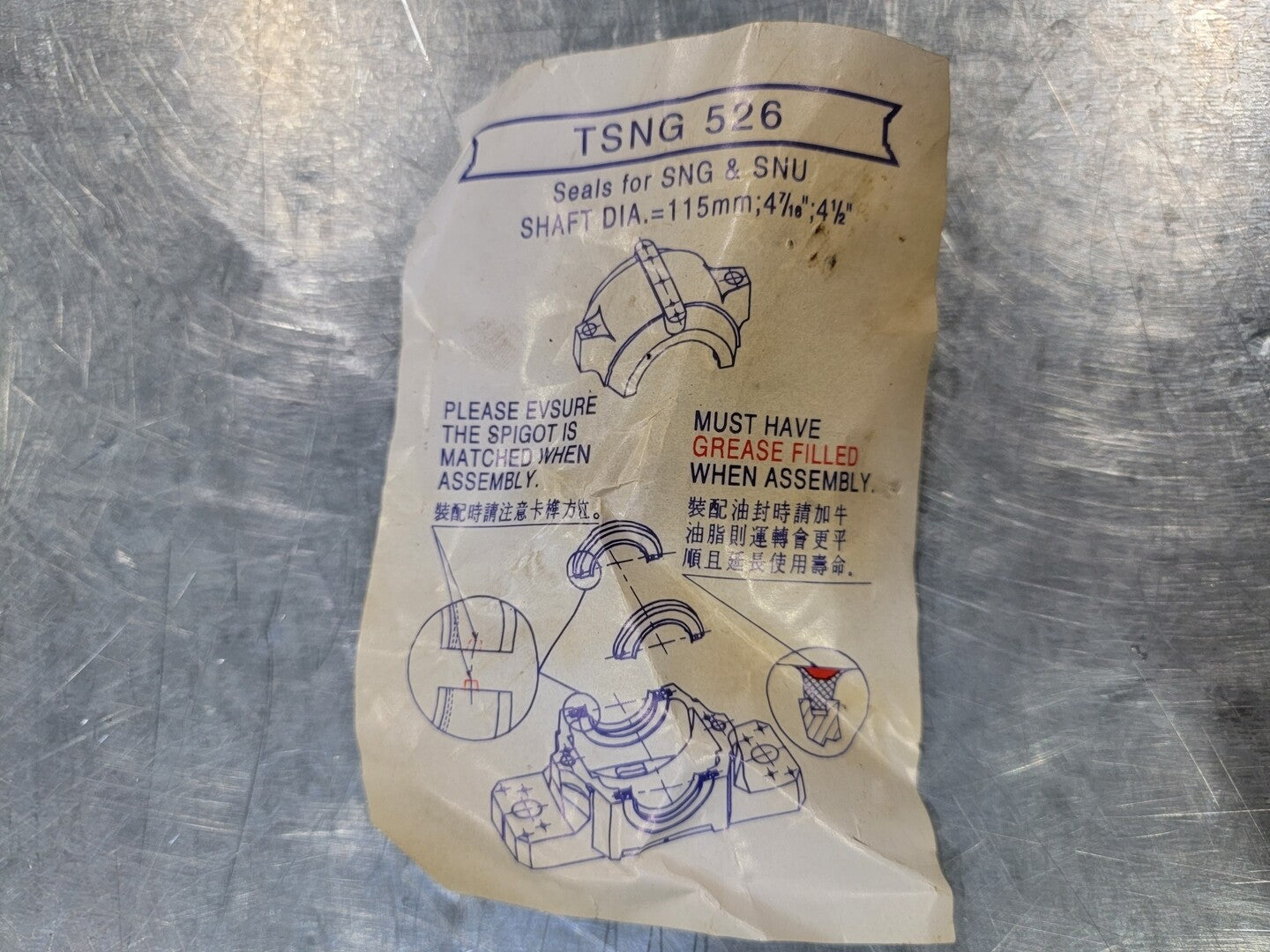 Sello laberíntico No. TSU522 para bloques de plomada con diámetro de eje de 115 mm/4-7/16"