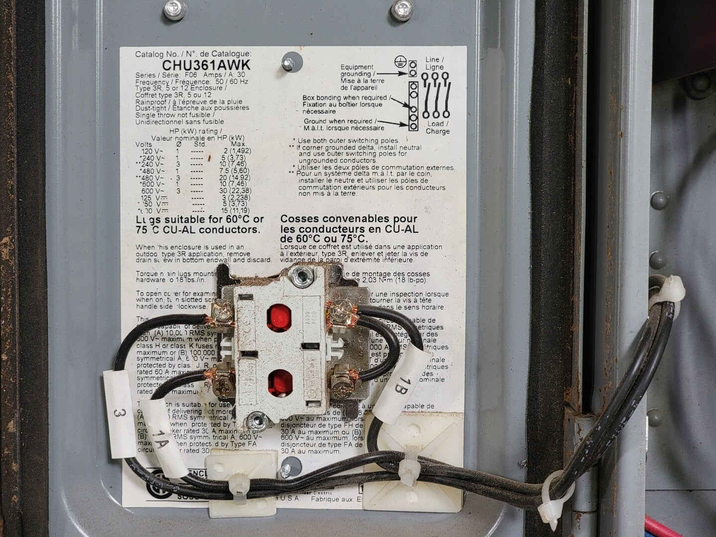 Interruptor de desconexión sin fusible No. CHU362AWK/ CHU361AWK