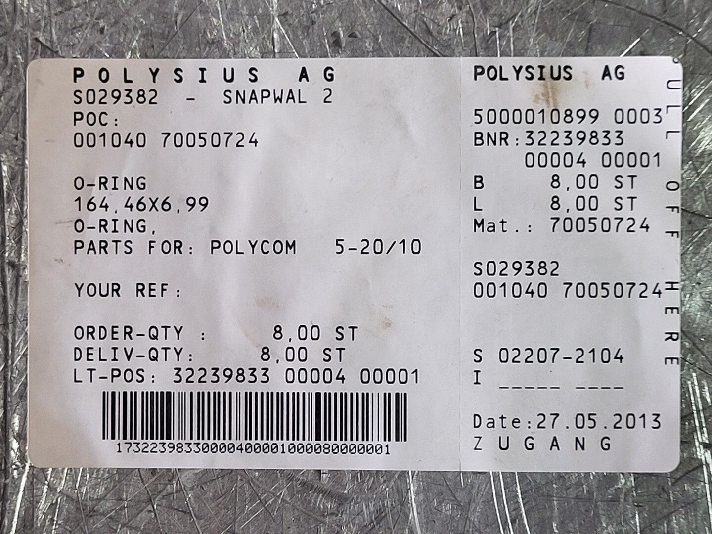 Junta tórica 164,46 x 6,99, n.º de pedido 4270020443, n.º de material 4204017450 (caja de 11)