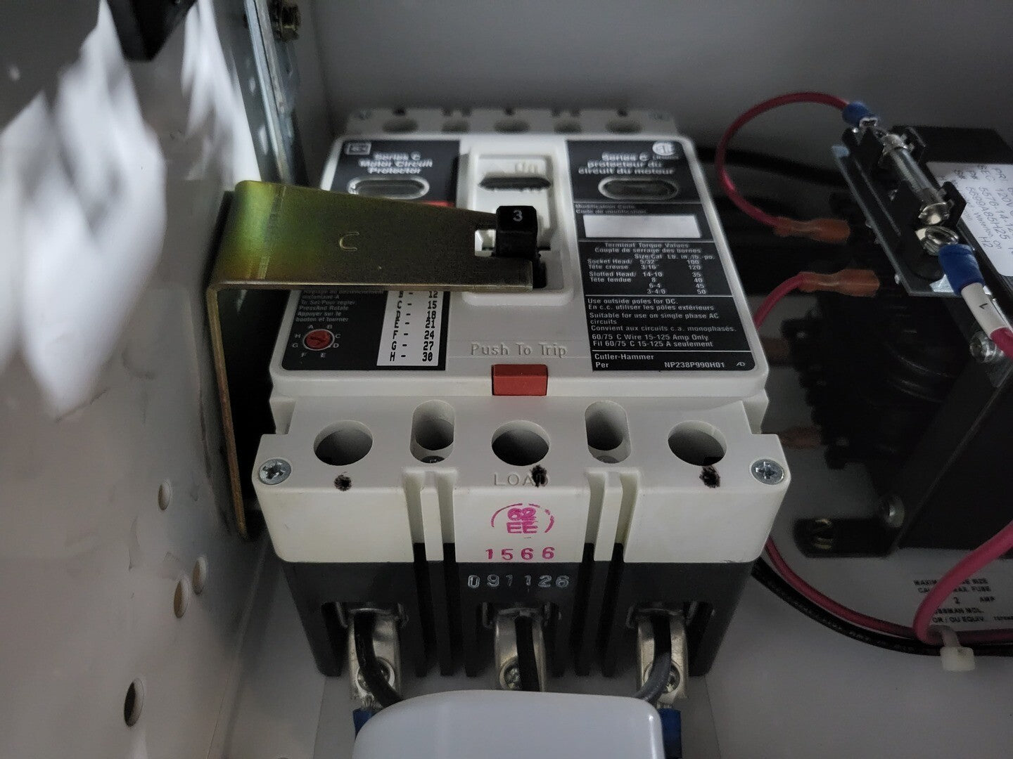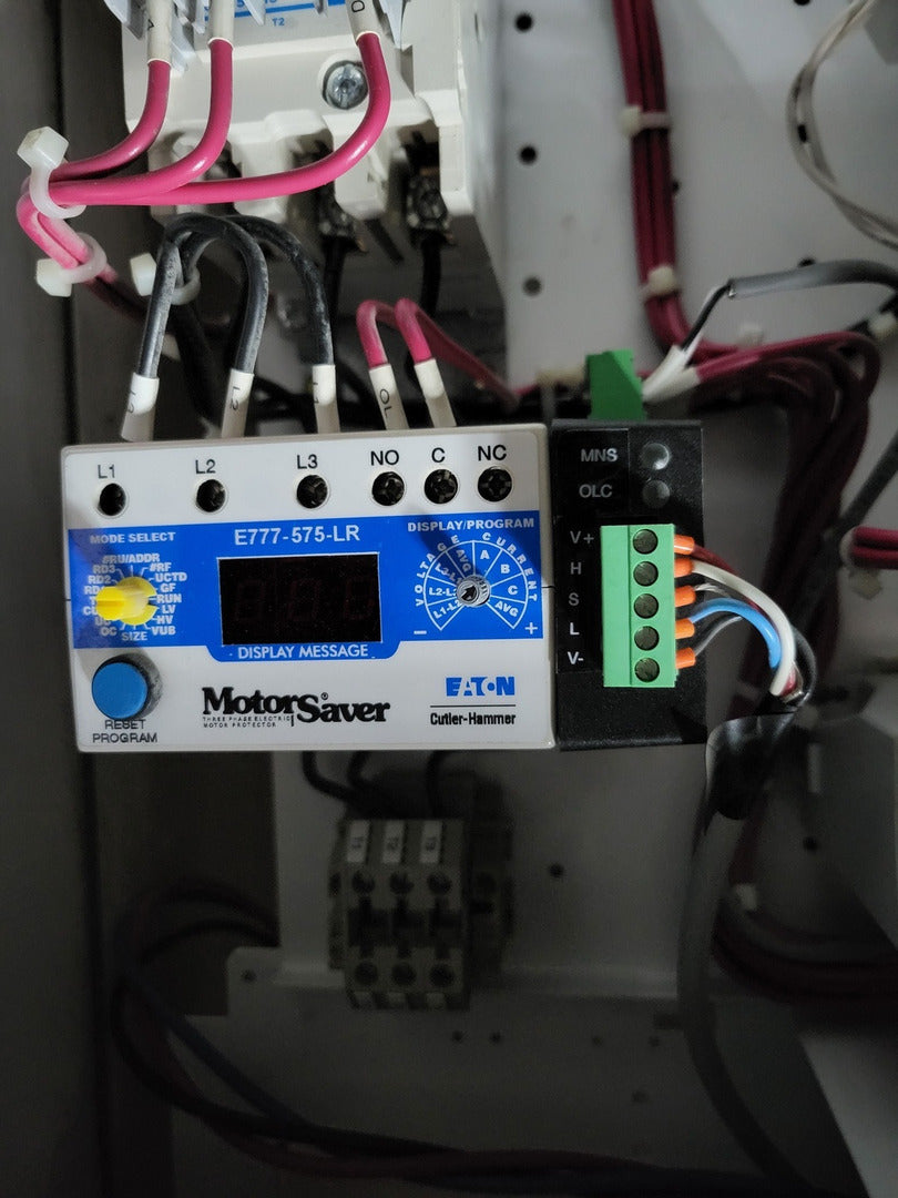 **Fits 2100 MCC Frame Circuit Breaker Maker: Eaton Model: HMCP Voltage: 600V Amps: 3 amps Poles: 3 Ground Fault Relay Maker: Eaton Model: D64RPB30 Overload relay: 24-240 Vac/dc Motor Saver Electronic Overload Relay Maker: Eaton Model: E777-575-LR Voltage: 450-600VAC Phase: 3 Transformer Maker: MCi Model: 5576-14-120-00 VA: 150VA Primary: 600V Secondary: 120V Devicenet Module Maker: Eaton Model: EC10-120-DN Inputs: 115VAC |