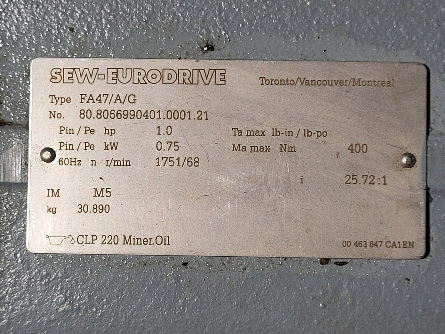 25.72:1 Gear Reducer FA47/A/G w/ 1.0hp Electric Motor
