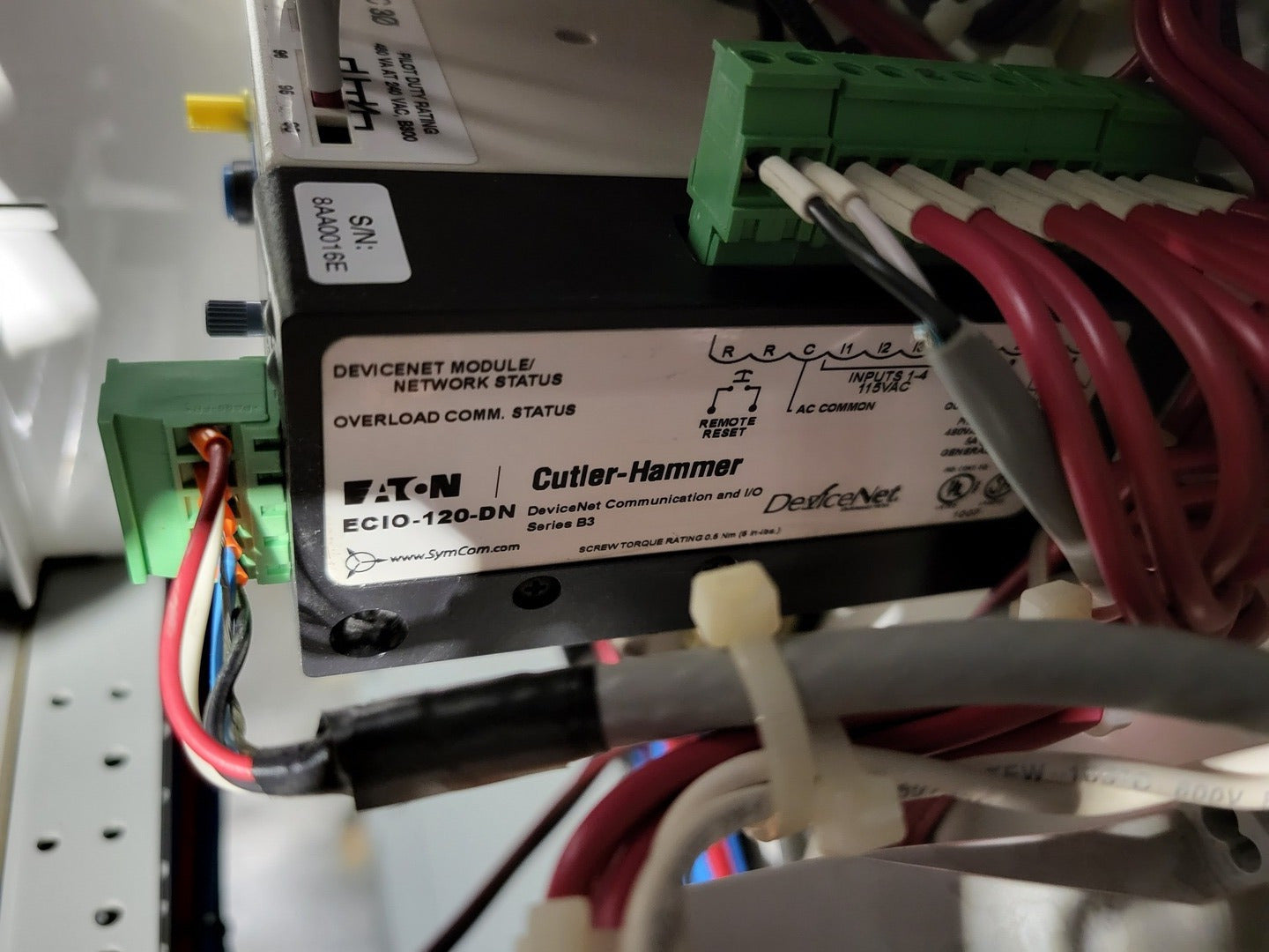 **Fits 2100 MCC Frame Circuit Breaker Maker: Eaton Model: HMCP Voltage: 600V Amps: 7 amps Poles: 3 Ground Fault Relay Maker: Eaton Model: D64RPB30 Overload relay: 24-240 Vac/dc Motor Saver Electronic Overload Relay Maker: Eaton Model: E777-575-LR Voltage: 450-600VAC Phase: 3 Transformer Maker: MCi Model: 5576-14-120-00 VA: 150VA Primary: 600V Secondary: 120V Devicenet Module Maker: Eaton Model: EC10-120-DN Inputs: 115VAC |