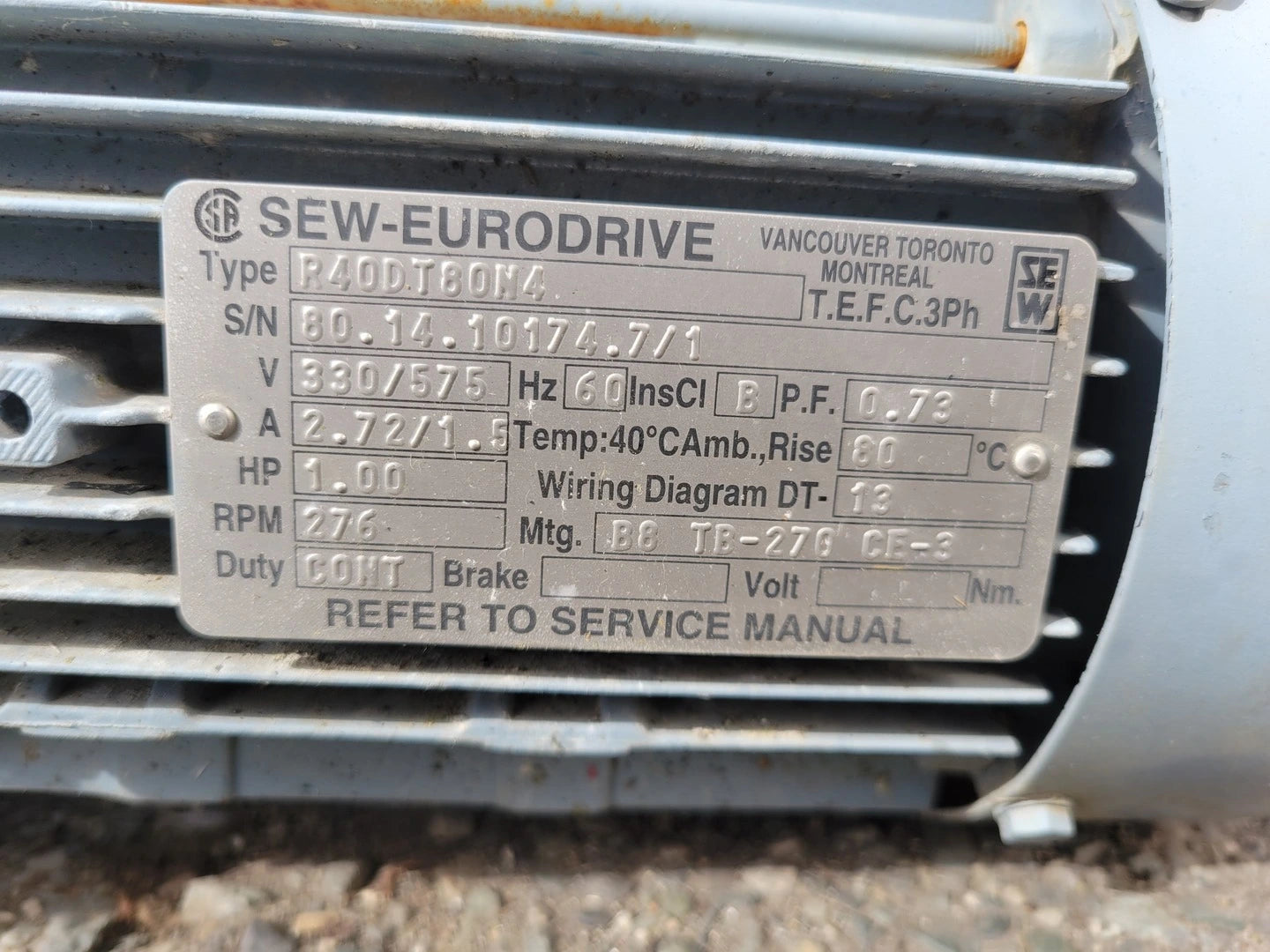 Motorreductor de 1 hp, 330/575 voltios, 276 Rpm