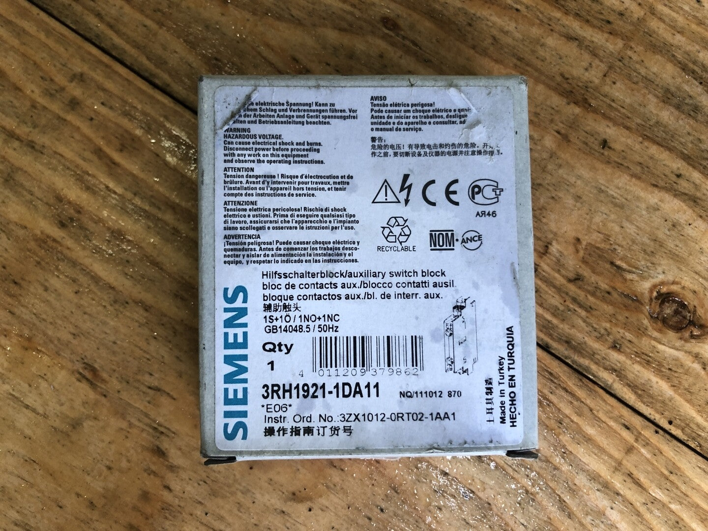 Bloque de contactos auxiliares de 10 amperios y 240 V n.º 3RH1921-1DA11