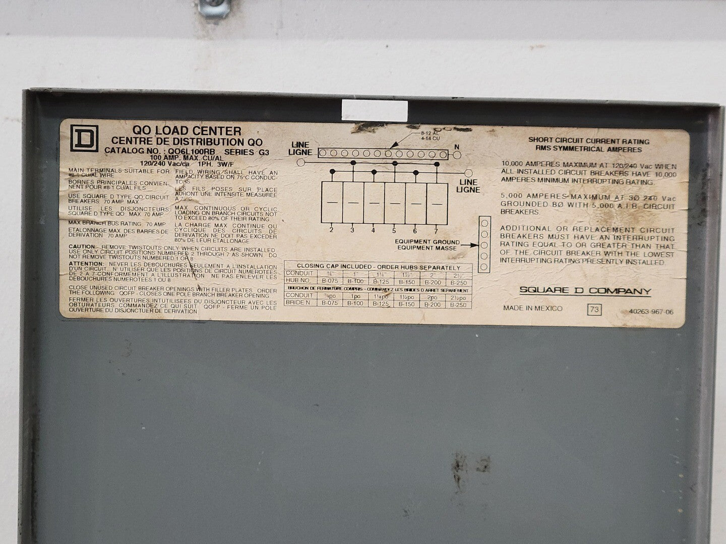 100 Amp Load Center QO6L100RB