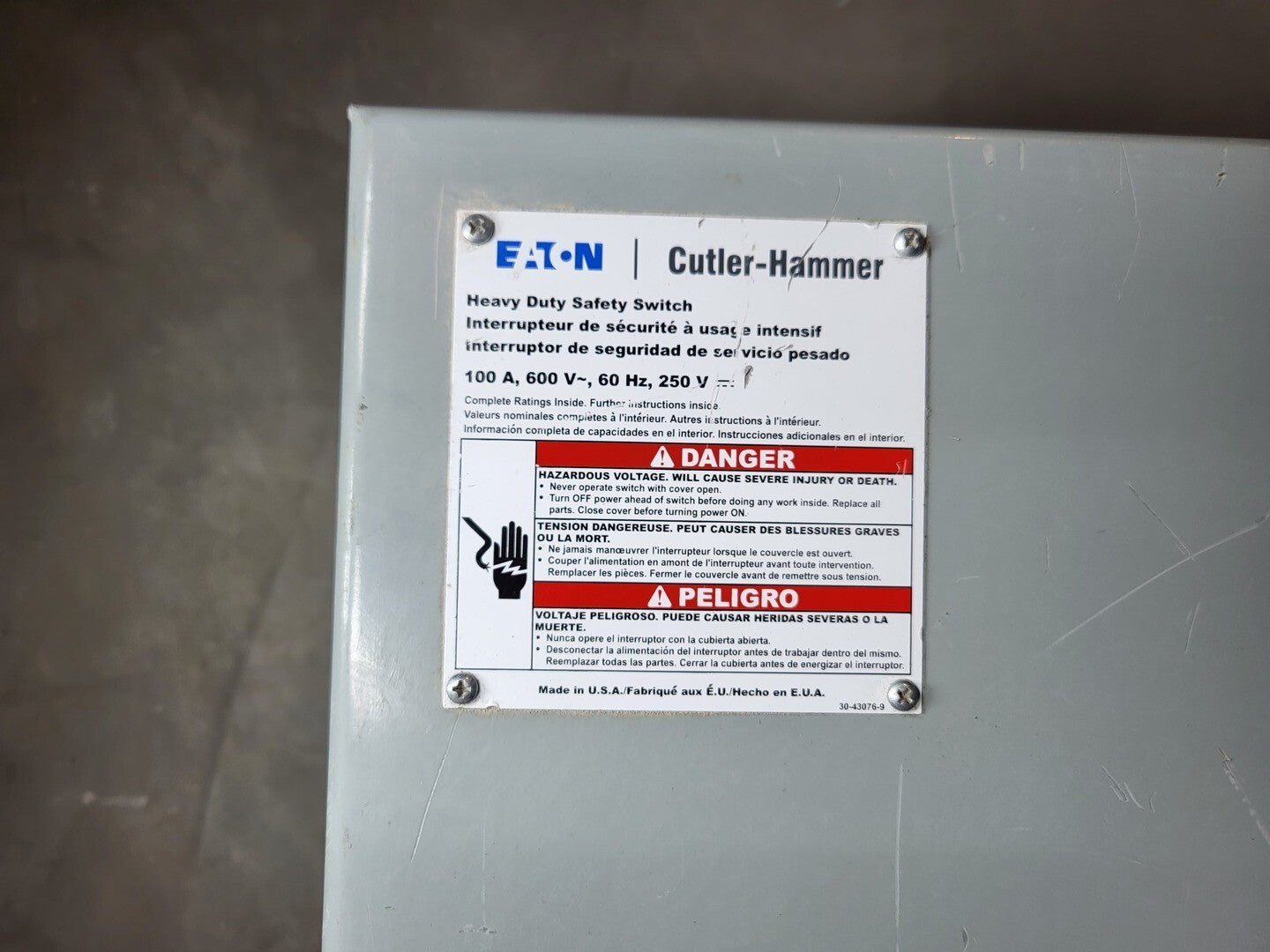 100 Amp, 3 Pole, 600 volts Non-Fused Disconnect Switch 12HD363NFW