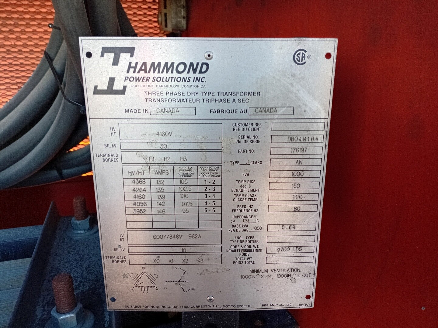 • Make: Hammond Power Solution Inc