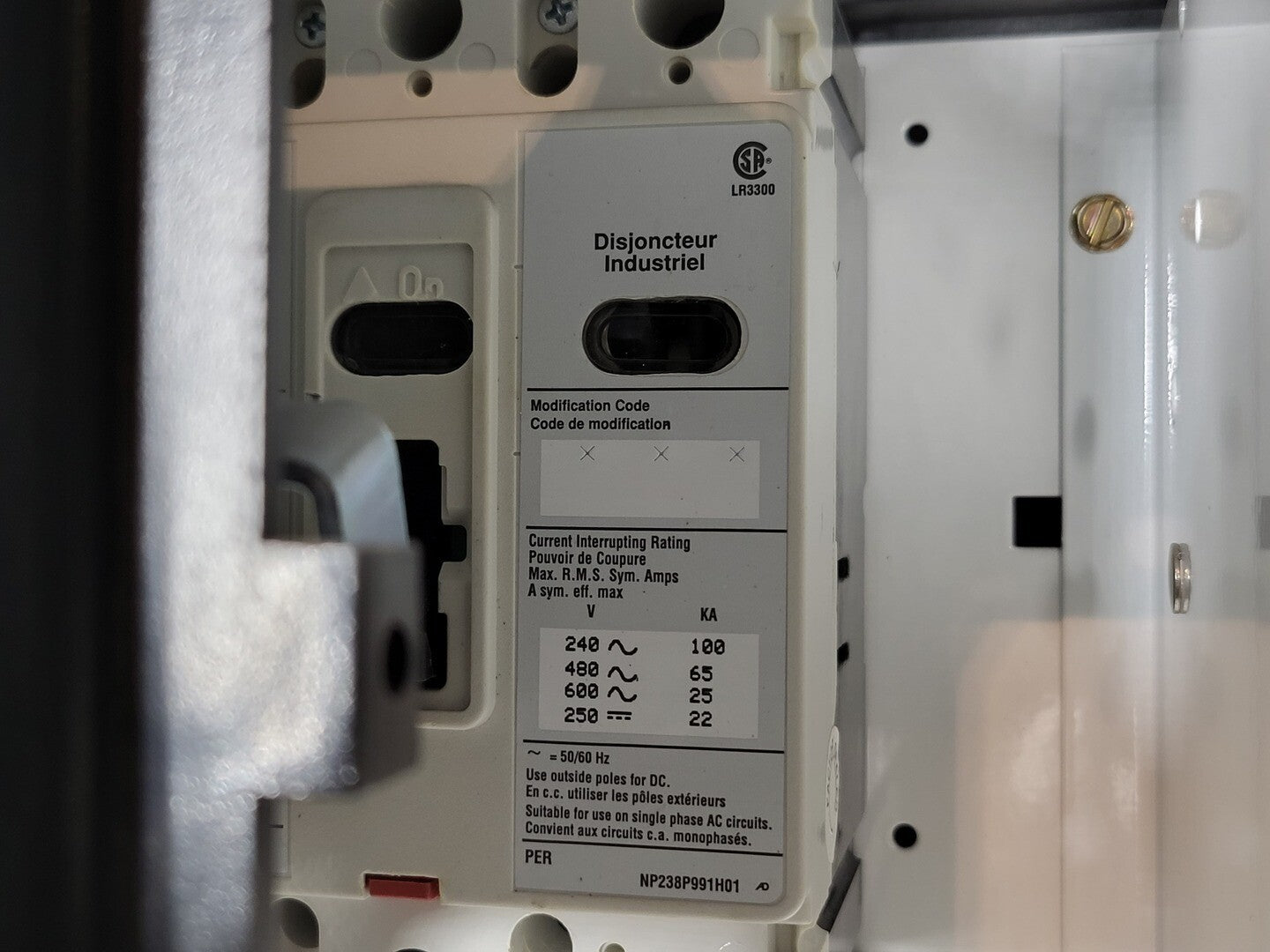 15 Amp, 3 Pole, 600V Disconnect Switch HFD3015 Bucket for Freedom 2100 MCC Frame