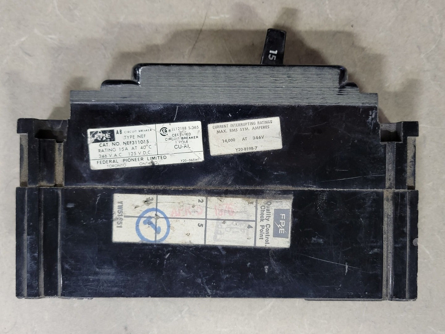 Disyuntor de 1 polo de 15 amperios NEF311015