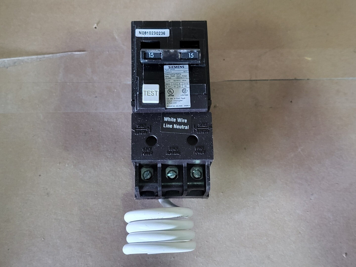 The QF215H is a 2-pole, 15 A molded case ground fault circuit breaker from Siemens. Rated for 120/240 VAC, it provides thermal-magnetic long-time and instantaneous trip protection and includes ground-fault (GFCI) functionality. It offers a 22 kA interrupting capacity at 240 VAC and uses a plug-in mounting style for easy installation in residential and light commercial load centers. UL 489 listed.