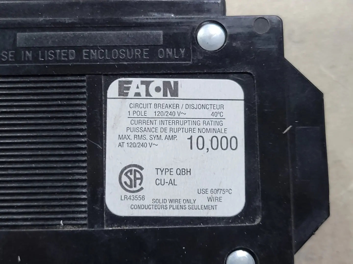 Clasificación de interrupción de corriente: 10 kA