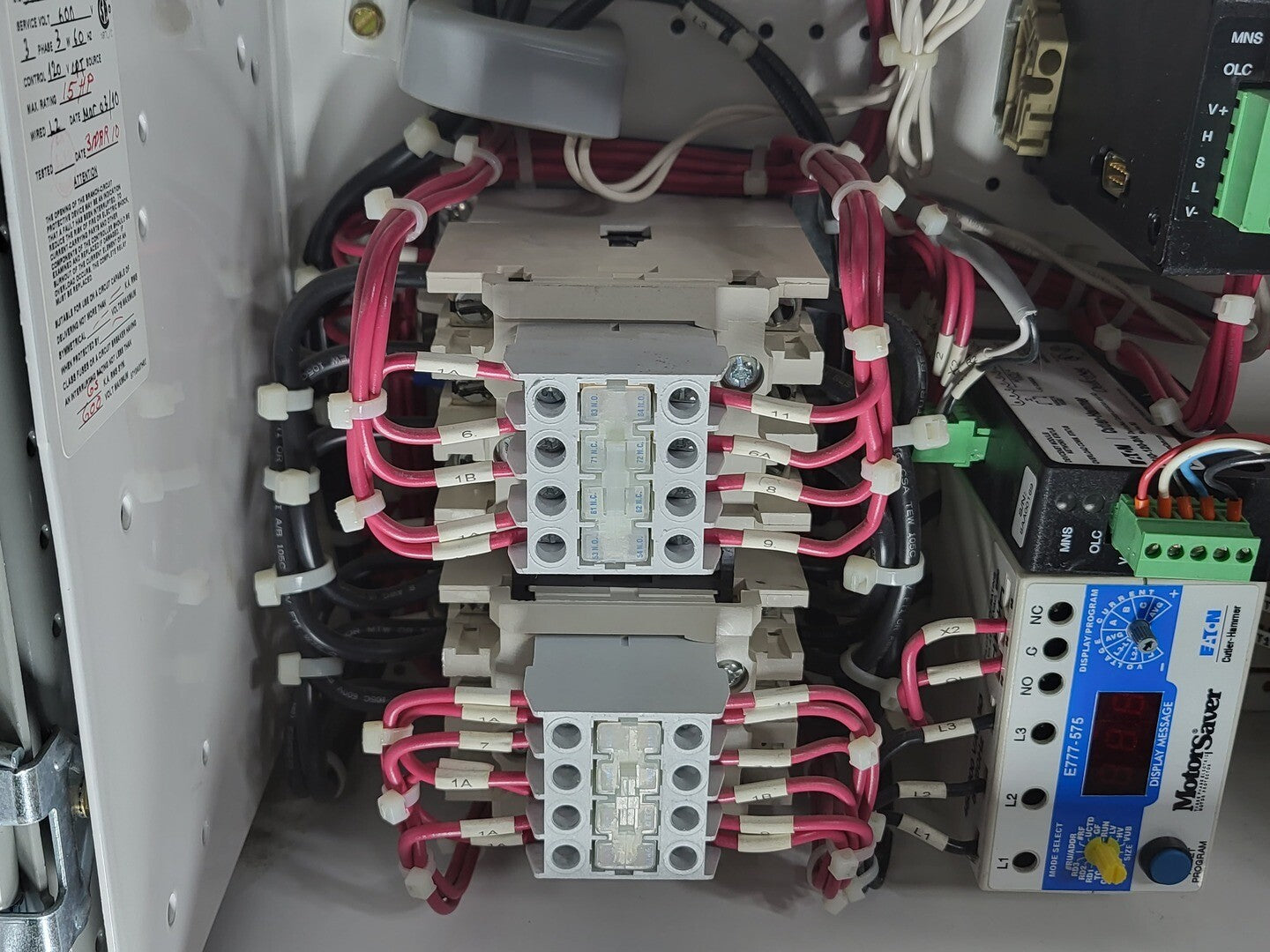 **Fits 2100 MCC Frame Circuit Breaker Maker: Eaton Model: HMCP Voltage: 600V Amps: 50 amps Poles: 3 Ground Fault Relay Maker: Eaton Model: D64RPB30 Overload relay: 24-240 Vac/dc Motor Saver Electronic Overload Relay Maker: Eaton Model: E777-575 Voltage: 450-600VAC Phase: 3 Transformer Maker: MCi Model: 5576-14-120-00 VA: 150V Primary: 600V Secondary: 120V |