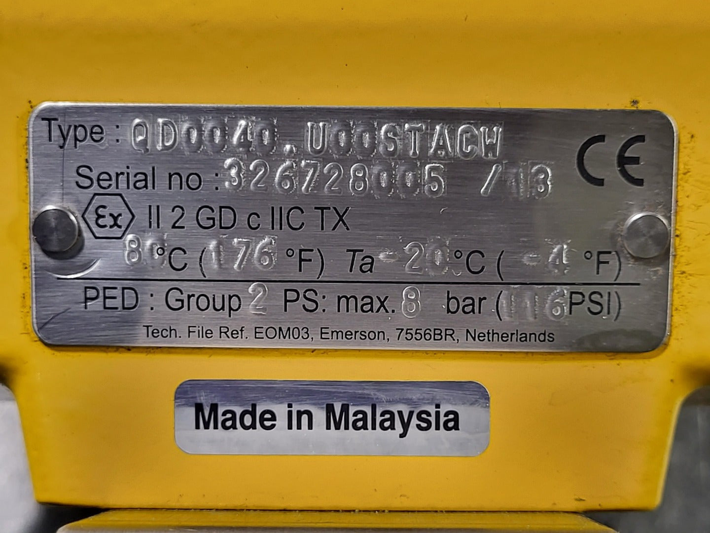Válvula CWP: 285PSIG Máx. Temperatura: 450 grados. F Material del asiento: MPTFE Material de la bola: 316SS Solenoide Marca: EMERSON Serie: CampoQ Modelo: QD0040.U00STACW Tipo: Doble efecto Ser.: 326728005 PED: Grupo 2 Presión: 8BAR Máx. (116 PSI) Mostrar Marca: WESTLOCK Serie: Accutrak Modelo: 1040 Adjunto. Tipo: 4, 4X Interruptores: Mecánicos Clasificación del interruptor: 15 A, 125/250 VCA; 1/2A, 125 VCC; 1/4A, 250 VCC |