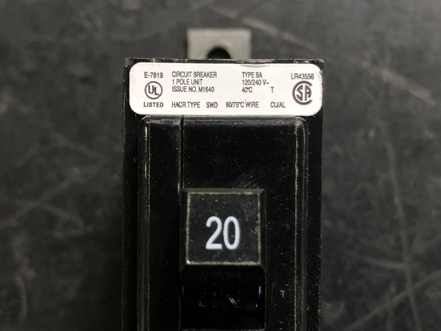 Disyuntor BA120 de 20 amperios y 1 polo