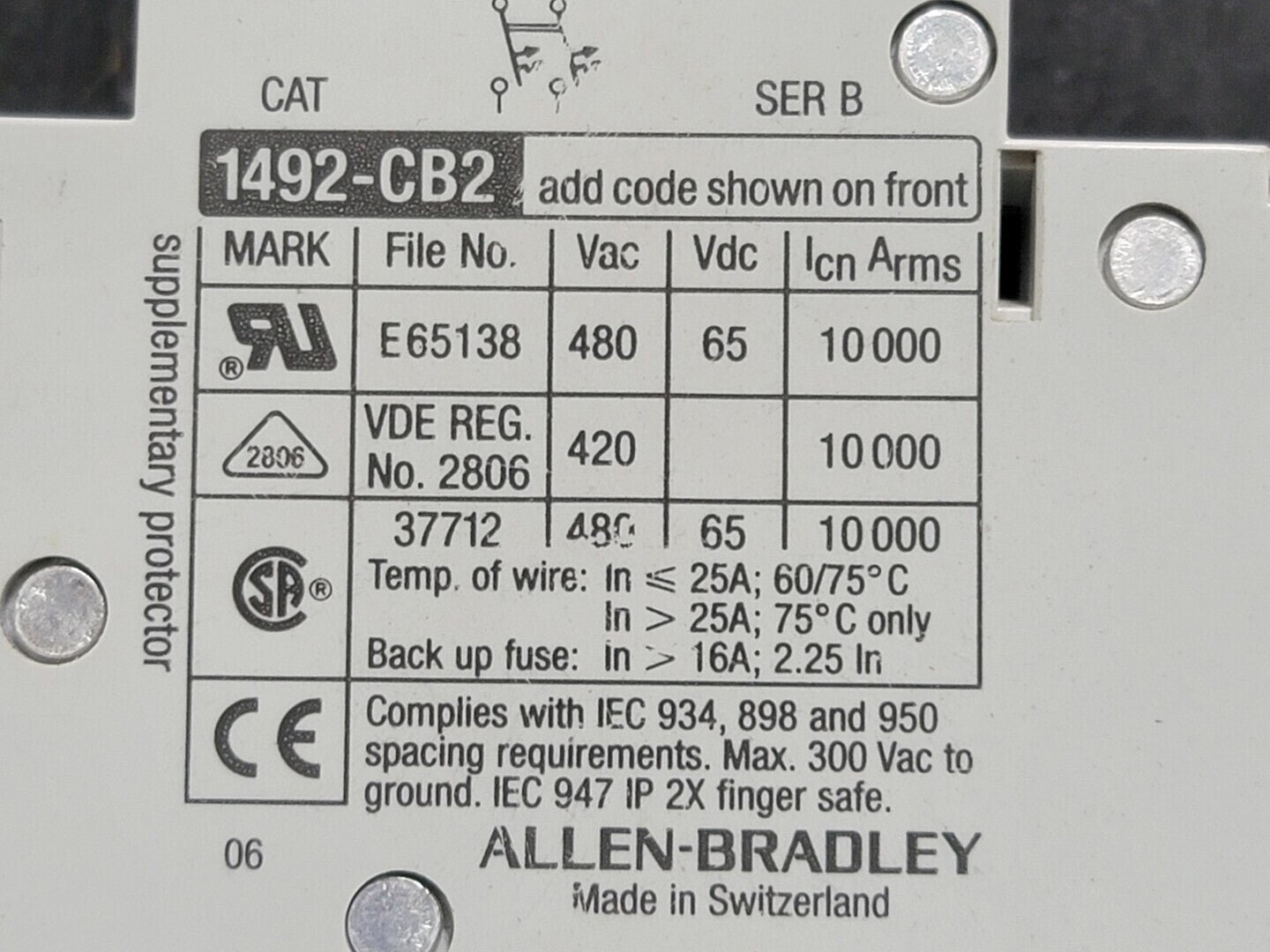 Capacidad de interrupción: 10kA a 480V