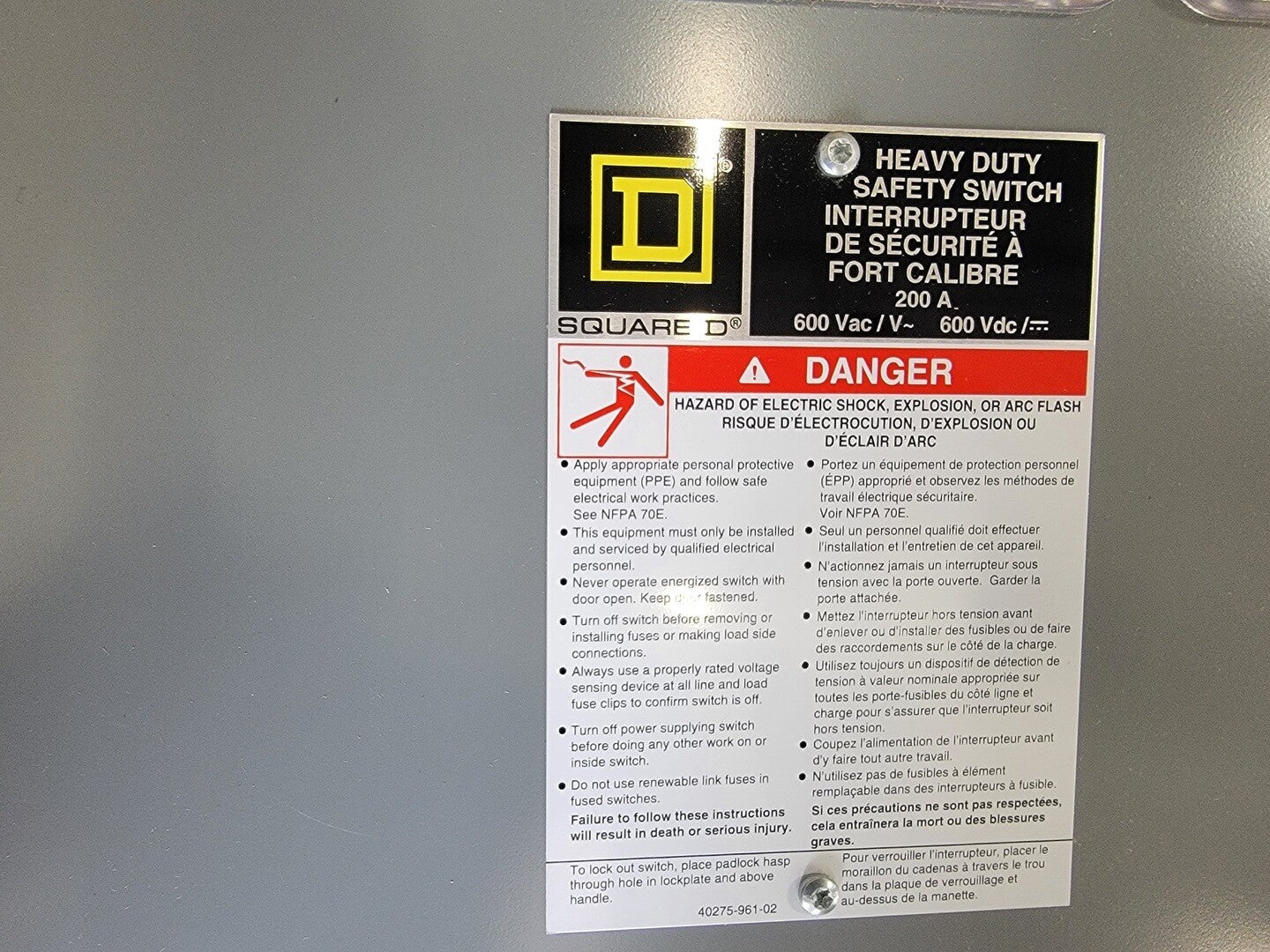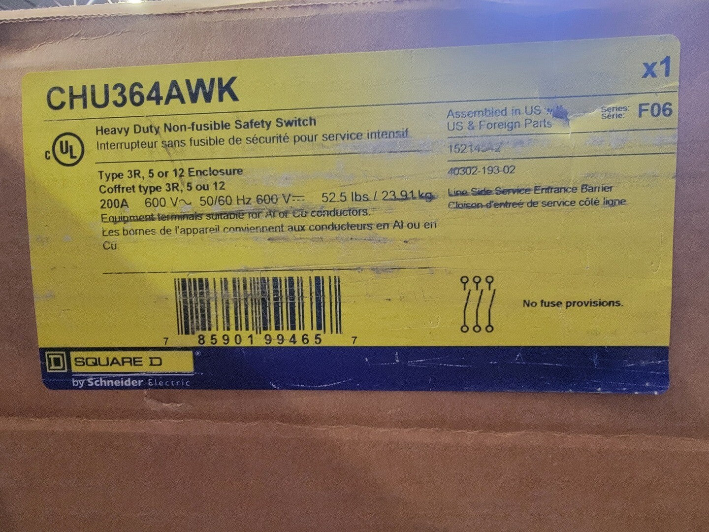 200 Amp, 3 Pole, 600 volts Non Fusible Safety Switch CHU364AWK