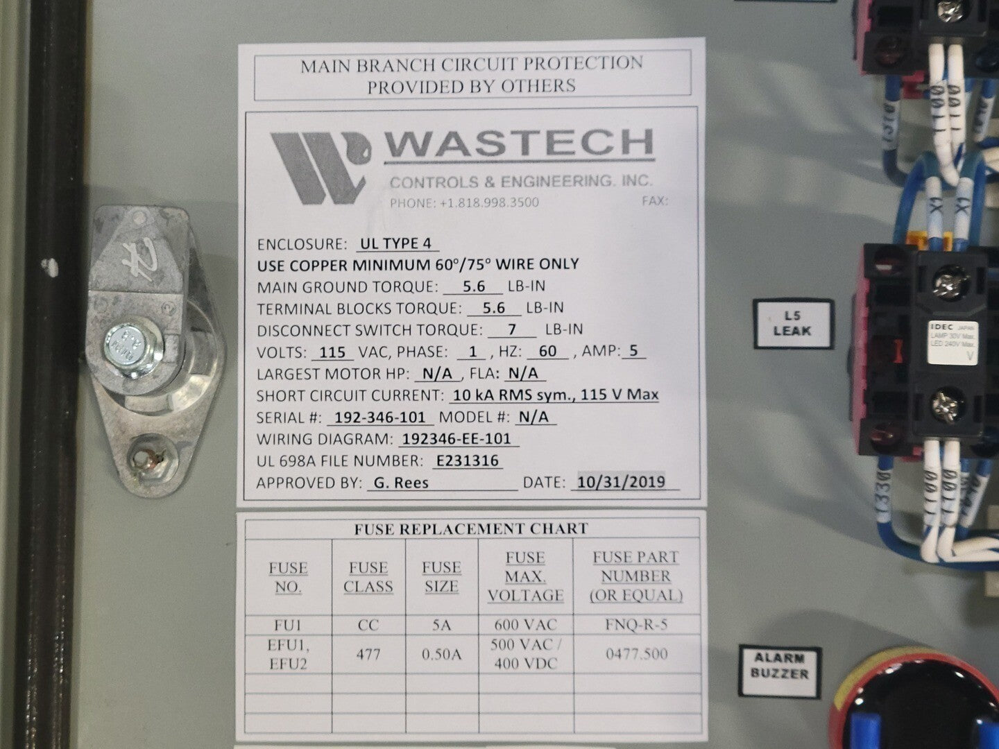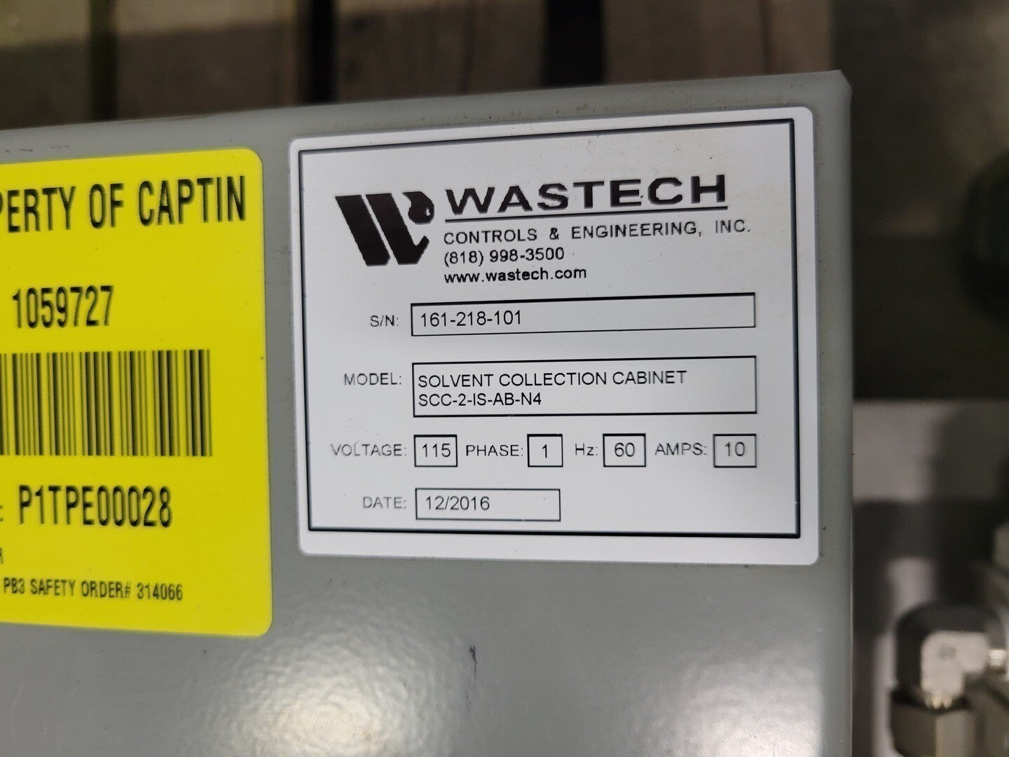 Panel de control del gabinete de recolección de solventes
