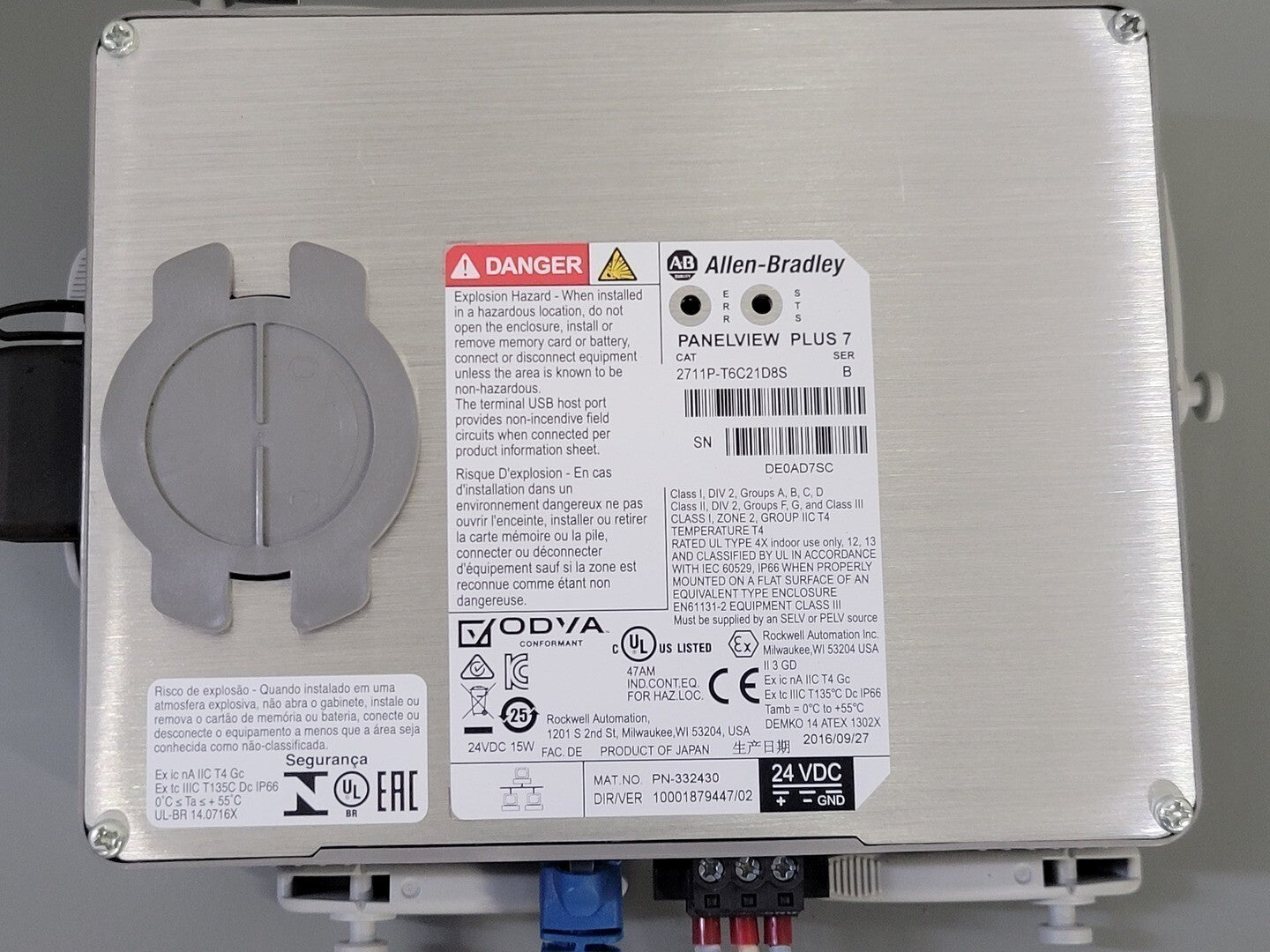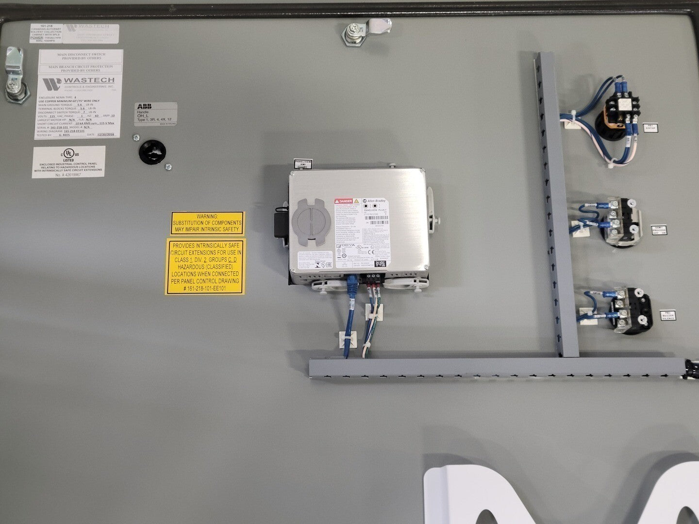 Clasificación del área: Panel montado remotamente, área no peligrosa con instrumentación intrínsecamente segura (UL 698A)